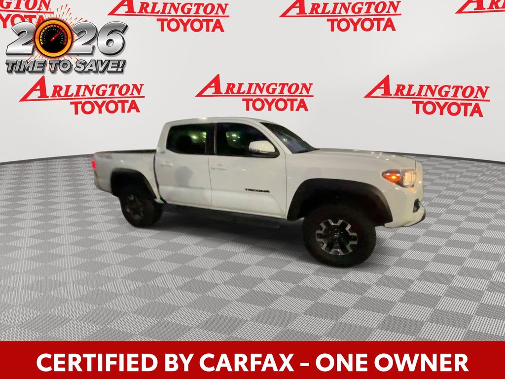 CERTIFIED BY CARFAX - ONE OWNER, REMAINDER OF FACTORY WARRANTY STILL APPLIES, BACKUP CAMERA, BLUETOOTH HANDS FREE, ANDROID AUTO, APPLE CARPLAY, BED LINER, POWER SEATS, LOCAL TRADE IN, LOW MILES, TOW PACKAGE, LANE DEPARTURE, ADAPTIVE CRUISE CONTROL, NON SMOKER, Tacoma TRD Offroad V6, 4D Double Cab, 3.5L V6 PDI DOHC 24V LEV3-ULEV70 278hp, 6-Speed Automatic, RWD, Ice Cap, Cement Cloth, ABS brakes, Electronic Stability Control, Front dual zone A/C, Low tire pressure warning, Steering wheel mounted audio controls, 6 Speakers, Air Conditioning, Alloy wheels, AM/FM radio: SiriusXM, Anti-whiplash front head restraints, Apple CarPlay/Android Auto, Auto High-beam Headlights, Auto-dimming Rear-View mirror, Automatic temperature control, Axle Ratio: 3.91, Black Overfenders, Blind Spot Monitor w/Rear Cross Traffic Alert, Brake assist, Bumpers: body-color, Driver door bin, Dual front impact airbags, Dual front side impact airbags, Exterior Parking Camera Rear, Fabric Seat Trim, Front anti-roll bar, Front Bucket Seats, Front Center Armrest, Front fog lights, Front reading lights, Front Seats, Front wheel independent suspension, Heated door mirrors, Illuminated entry, Knee airbag, Occupant sensing airbag, Outside temperature display, Overhead airbag, Overhead console, Panic alarm, Passenger door bin, Power door mirrors, Power driver seat, Power steering, Power windows, Radio: Audio, Rear Parking Assist Sonar, Rear step bumper, Remote keyless entry, Speed control, Speed-sensing steering, Split folding rear seat, Tachometer, Technology Package, Telescoping steering wheel, Tilt steering wheel, Traction control, Trip computer, Variably intermittent wipers, Tacoma TRD Offroad V6, 4D Double Cab, 3.5L V6 PDI DOHC 24V LEV3-ULEV70 278hp, 6-Speed Automatic, RWD, Ice Cap, Cement Cloth, ABS brakes, Electronic Stability Control, Front dual zone A/C, Low tire pressure warning, Steering wheel mounted audio controls.