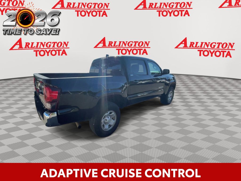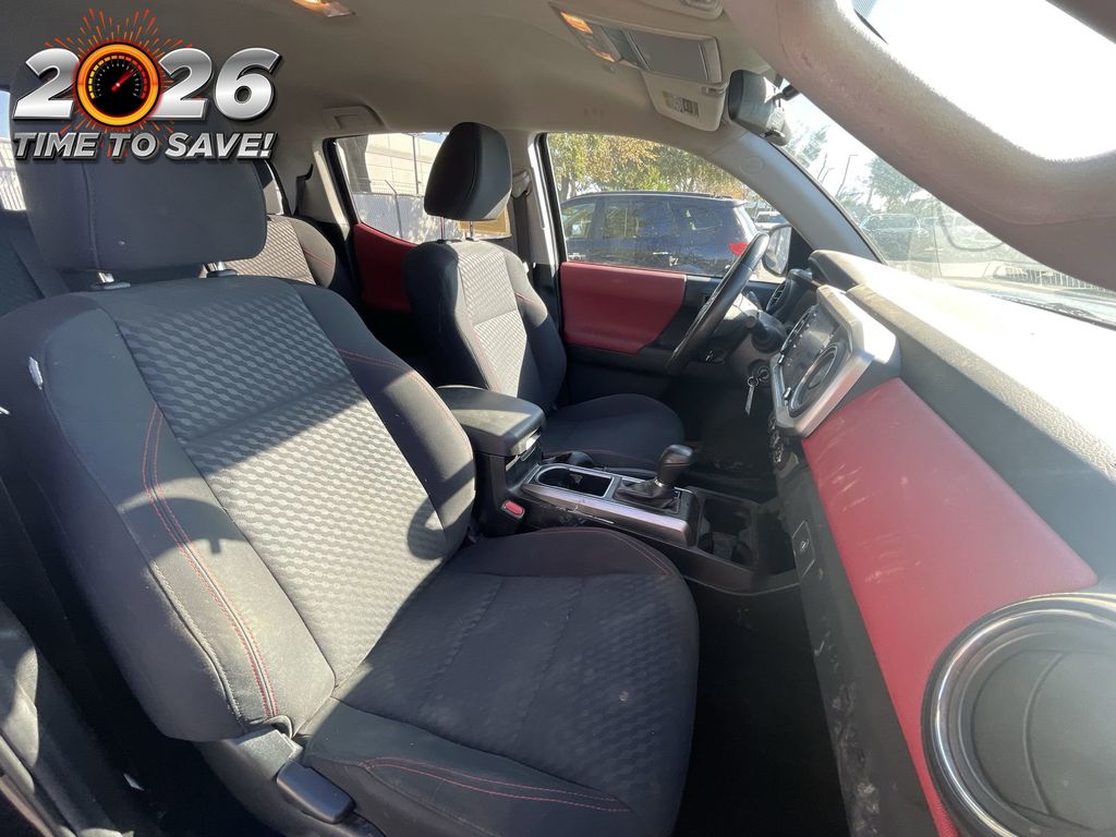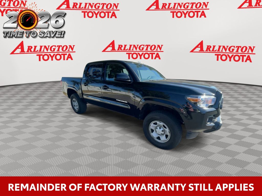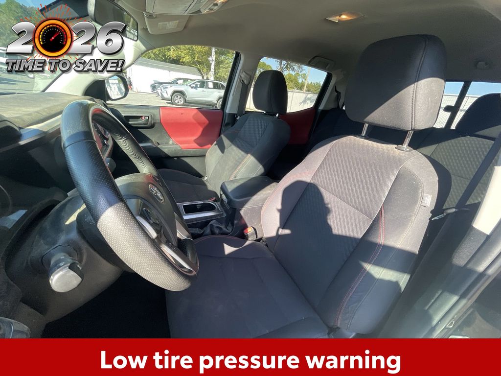 REMAINDER OF FACTORY WARRANTY STILL APPLIES, BACKUP CAMERA, BLUETOOTH HANDS FREE, ANDROID AUTO, APPLE CARPLAY, LANE DEPARTURE, ADAPTIVE CRUISE CONTROL, NON SMOKER, Tacoma SR5, 4D Double Cab, 2.7L SMPI DOHC, 6-Speed Automatic, RWD, Black, Black/Red Cloth, ABS brakes, Electronic Stability Control, Low tire pressure warning, Steering wheel mounted audio controls, 16" Styled Steel Wheels, 6 Speakers, Air Conditioning, AM/FM radio: SiriusXM, Anti-whiplash front head restraints, Apple CarPlay/Android Auto, Auto High-beam Headlights, Axle Ratio: 4.30, Black Headlamp Bezel, Brake assist, Bumpers: body-color, Charcoal Grille w/Chrome Surround, Chrome Rear Bumper, Daytime Running Lamps, Driver door bin, Dual front impact airbags, Dual front side impact airbags, Exterior Parking Camera Rear, Fabric Seat Trim, Front anti-roll bar, Front Bucket Seats, Front Center Armrest, Front Door Smart Key System w/Push Button Start, Front Fog & Driving Lamp, Front fog lights, Front reading lights, Front Seats, Front wheel independent suspension, Heated door mirrors, Illuminated entry, Knee airbag, Occupant sensing airbag, Outside temperature display, Overhead airbag, Overhead console, Panic alarm, Passenger door bin, Power door mirrors, Power steering, Power windows, Radio: Audio, Rear step bumper, Remote keyless entry, Speed control, Speed-sensing steering, Split folding rear seat, SR5 Package, Tachometer, Telescoping steering wheel, Tilt steering wheel, Traction control, Trip computer, Variably intermittent wipers, Tacoma SR5, 4D Double Cab, 2.7L SMPI DOHC, 6-Speed Automatic, RWD, Black, Black/Red Cloth, ABS brakes, Electronic Stability Control, Low tire pressure warning, Steering wheel mounted audio controls.