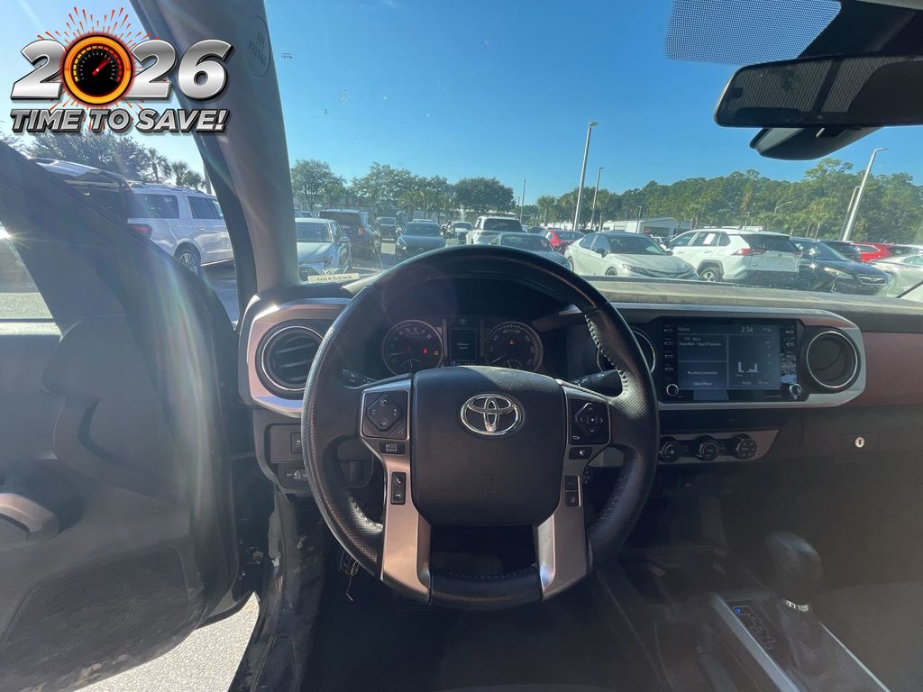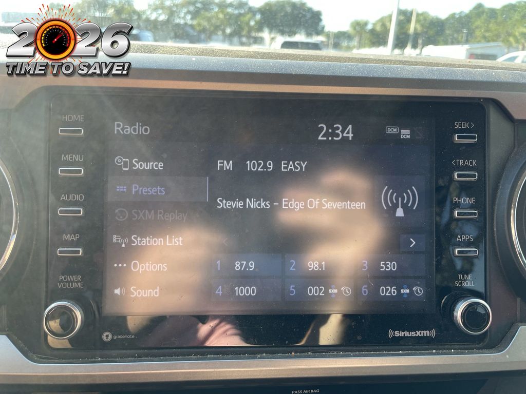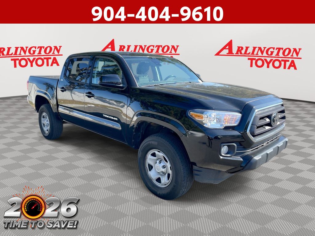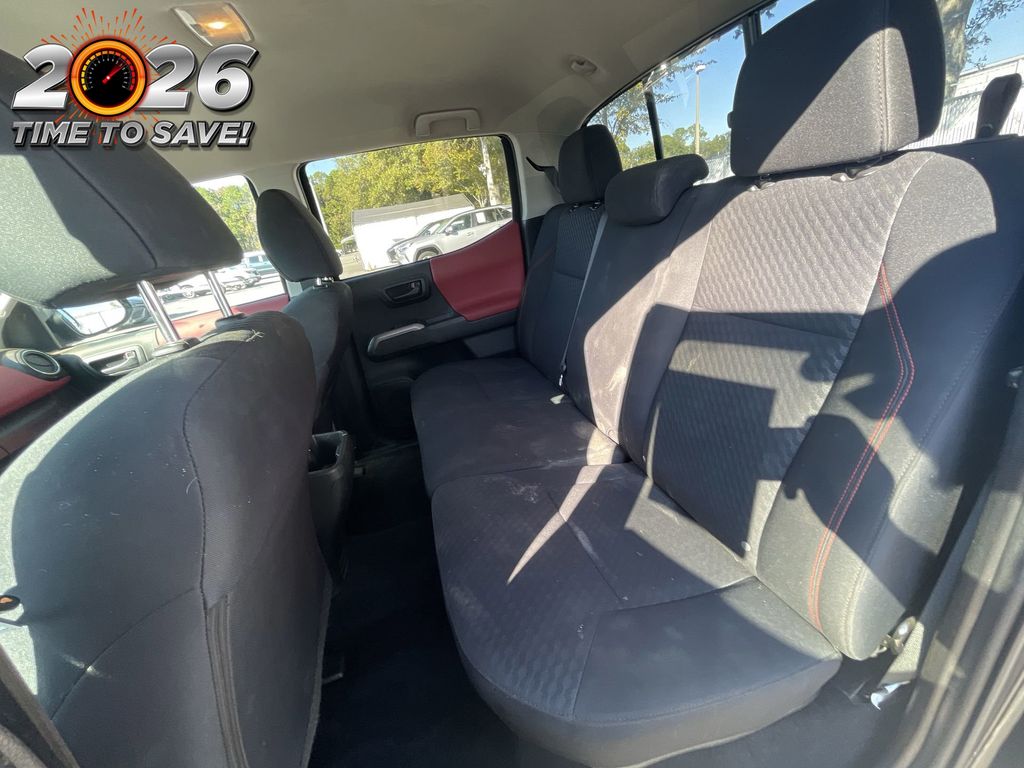 REMAINDER OF FACTORY WARRANTY STILL APPLIES, BACKUP CAMERA, BLUETOOTH HANDS FREE, ANDROID AUTO, APPLE CARPLAY, LANE DEPARTURE, ADAPTIVE CRUISE CONTROL, NON SMOKER, Tacoma SR5, 4D Double Cab, 2.7L SMPI DOHC, 6-Speed Automatic, RWD, Black, Black/Red Cloth, ABS brakes, Electronic Stability Control, Low tire pressure warning, Steering wheel mounted audio controls, 16" Styled Steel Wheels, 6 Speakers, Air Conditioning, AM/FM radio: SiriusXM, Anti-whiplash front head restraints, Apple CarPlay/Android Auto, Auto High-beam Headlights, Axle Ratio: 4.30, Black Headlamp Bezel, Brake assist, Bumpers: body-color, Charcoal Grille w/Chrome Surround, Chrome Rear Bumper, Daytime Running Lamps, Driver door bin, Dual front impact airbags, Dual front side impact airbags, Exterior Parking Camera Rear, Fabric Seat Trim, Front anti-roll bar, Front Bucket Seats, Front Center Armrest, Front Door Smart Key System w/Push Button Start, Front Fog & Driving Lamp, Front fog lights, Front reading lights, Front Seats, Front wheel independent suspension, Heated door mirrors, Illuminated entry, Knee airbag, Occupant sensing airbag, Outside temperature display, Overhead airbag, Overhead console, Panic alarm, Passenger door bin, Power door mirrors, Power steering, Power windows, Radio: Audio, Rear step bumper, Remote keyless entry, Speed control, Speed-sensing steering, Split folding rear seat, SR5 Package, Tachometer, Telescoping steering wheel, Tilt steering wheel, Traction control, Trip computer, Variably intermittent wipers, Tacoma SR5, 4D Double Cab, 2.7L SMPI DOHC, 6-Speed Automatic, RWD, Black, Black/Red Cloth, ABS brakes, Electronic Stability Control, Low tire pressure warning, Steering wheel mounted audio controls.