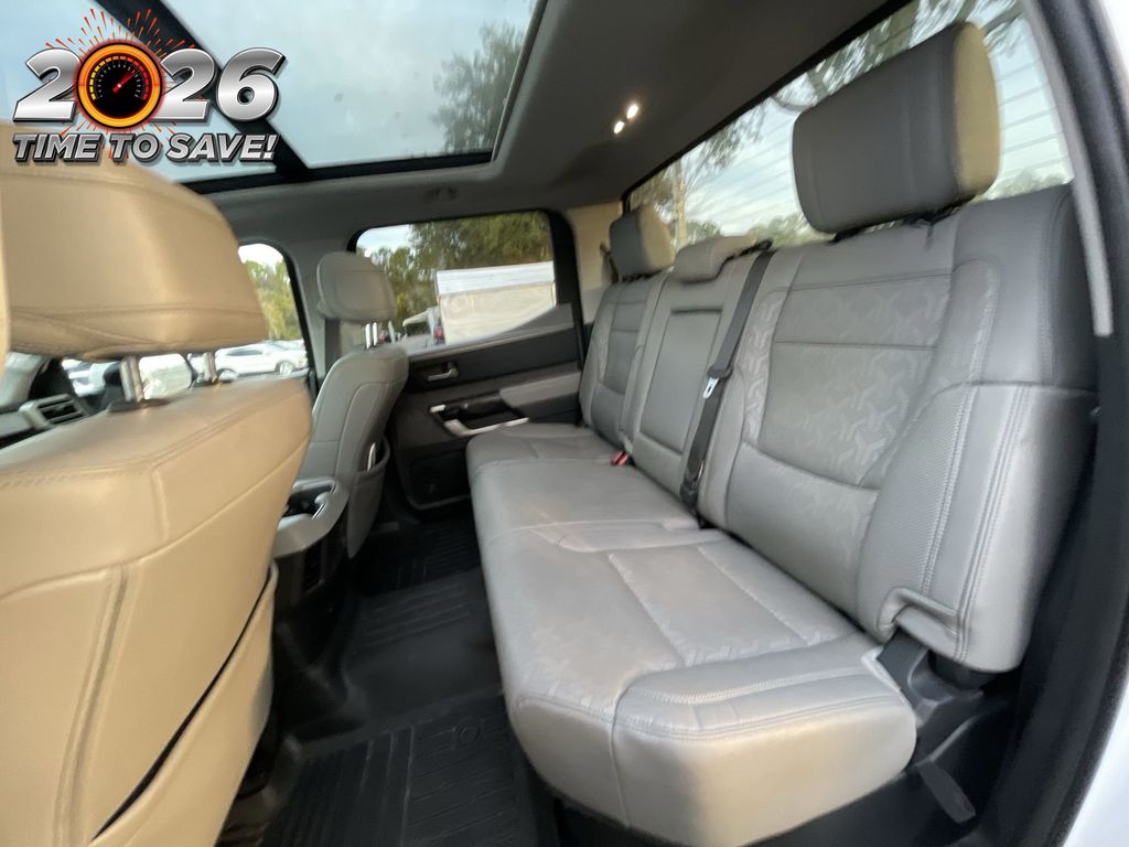 REMAINDER OF FACTORY WARRANTY STILL APPLIES, BACKUP CAMERA, BLUETOOTH HANDS FREE, ANDROID AUTO, APPLE CARPLAY, 4X4/FOUR WHEEL DRIVE, BED LINER, HEATED LEATHER SEATS, POWER SEATS, LOCAL TRADE IN, PANORAMIC MOONROOF, TOW PACKAGE, PUSH BUTTON START, LANE DEPARTURE, ADAPTIVE CRUISE CONTROL, NON SMOKER, Tundra Limited 4x4, 4D CrewMax, 3.4L V6, 10-Speed Automatic, 4WD, Ice Cap, Boulder w/SofTex Seat Trim, 20" Alloy Wheels, 3.31 Axle Ratio, 4-Wheel Disc Brakes, 8-Way Pwr Adjustable Heated/Ventilated Front Seats, 9 Speakers, ABS brakes, Air Conditioning, Alloy wheels, AM/FM radio: SiriusXM, Apple CarPlay/Android Auto, Auto High-beam Headlights, Auto-dimming door mirrors, Auto-dimming Rear-View mirror, Automatic temperature control, Brake assist, Bumpers: body-color, Delay-off headlights, Driver door bin, Driver vanity mirror, Dual front impact airbags, Dual front side impact airbags, Electronic Stability Control, Emergency communication system: Safety Connect (10-year trial), Exterior Parking Camera Rear, Front anti-roll bar, Front Bucket Seats, Front Center Armrest, Front dual zone A/C, Front fog lights, Front reading lights, Front wheel independent suspension, Fully automatic headlights, Garage door transmitter: HomeLink, Heated door mirrors, Heated front seats, Illuminated entry, Knee airbag, Leather Shift Knob, Low tire pressure warning, Memory seat, Navigation System, Occupant sensing airbag, Outside temperature display, Overhead airbag, Overhead console, Panic alarm, Passenger door bin, Passenger vanity mirror, Power door mirrors, Power driver seat, Power passenger seat, Power steering, Power Tilt/Slide Panoramic Sunroof, Power windows, Radio data system, Radio: Audio Multimedia System, Rear reading lights, Rear seat center armrest, Rear step bumper, Rear window defroster, Remote keyless entry, Safety Connect, Security system, SofTex Seat Trim, Speed control, Speed-sensing steering, Split folding rear seat, Steering wheel mounted audio controls, Tachometer, Telescoping steering wheel, Tilt steering wheel, Traction control, Trip computer, Turn signal indicator mirrors, Variably intermittent wipers, Ventilated front seats, Voltmeter, Tundra Limited 4x4, 4D CrewMax, 3.4L V6, 10-Speed Automatic, 4WD, Ice Cap, Boulder w/SofTex Seat Trim.