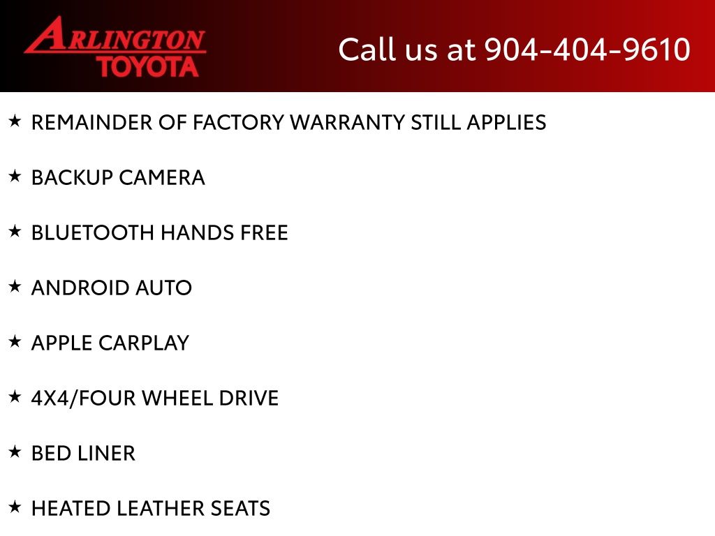 CALL FOR AVAILABILITY AND EXTRA OPTIONS ARLINGTON TOYOTA 904-721-3000.