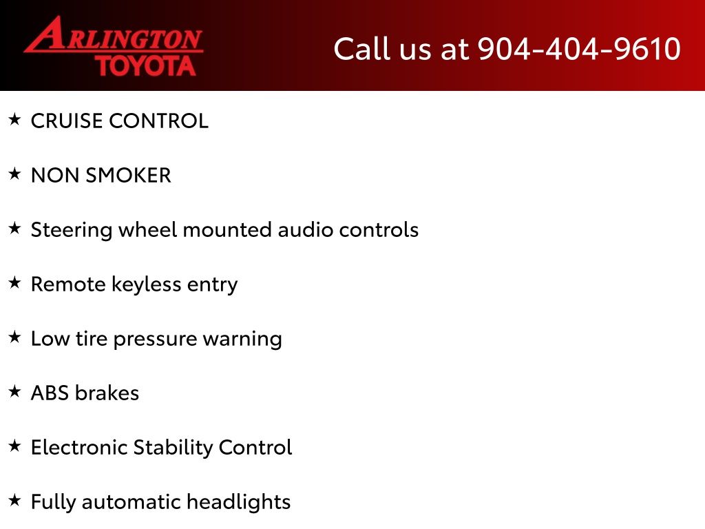 CALL FOR AVAILABILITY AND EXTRA OPTIONS ARLINGTON TOYOTA 904-721-3000.