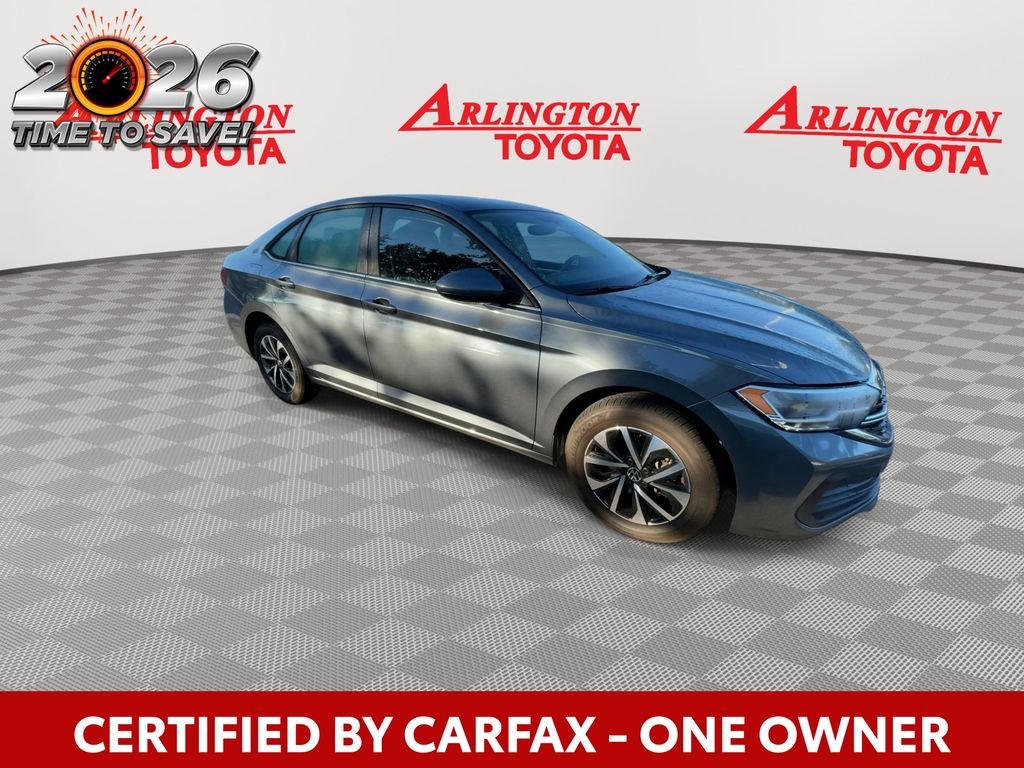 CERTIFIED BY CARFAX - ONE OWNER, REMAINDER OF FACTORY WARRANTY STILL APPLIES, BACKUP CAMERA, BLUETOOTH HANDS FREE, ANDROID AUTO, APPLE CARPLAY, LOCAL TRADE IN, TURBOCHARGED, CRUISE CONTROL, NON SMOKER, Jetta 1.5T S, 4D Sedan, 1.5L I-4 DI DOHC Turbocharged, 8-Speed Automatic with Tiptronic, FWD, Platinum Gray Metallic, Titan Black w/Cloth Seat Trim, ABS brakes, Electronic Stability Control, Fully automatic headlights, Low tire pressure warning, Remote keyless entry, Steering wheel mounted audio controls, 4 Speakers, 4-Wheel Disc Brakes, Air Conditioning, Alloy wheels, AM/FM radio, Brake assist, Bumpers: body-color, Cloth Seat Trim, Delay-off headlights, Driver door bin, Driver vanity mirror, Dual front impact airbags, Dual front side impact airbags, Exterior Parking Camera Rear, Front anti-roll bar, Front Bucket Seats, Front Center Armrest, Front Comfort Seats, Front wheel independent suspension, Heated door mirrors, Heavy Duty Trunk Liner w/VW CarGo Blocks, Illuminated entry, Occupant sensing airbag, Outside temperature display, Overhead airbag, Overhead console, Panic alarm, Passenger door bin, Passenger vanity mirror, Power door mirrors, Power steering, Power windows, Radio data system, Radio: MIB3 Composition Color w/6.5" Touchscreen, Rear anti-roll bar, Rear reading lights, Rear window defroster, Rubber Monster Mats Kit (Set of 4), Speed control, Speed-sensing steering, Split folding rear seat, Tachometer, Telescoping steering wheel, Tilt steering wheel, Traction control, Trip computer, Variably intermittent wipers, VW Car-Net Safe & Secure 5-Year Plan, Wheels: 16" 2-Tone Machined Alloy, Jetta 1.5T S, 4D Sedan, 1.5L I-4 DI DOHC Turbocharged, 8-Speed Automatic with Tiptronic, FWD, Platinum Gray Metallic, Titan Black w/Cloth Seat Trim, ABS brakes, Electronic Stability Control, Fully automatic headlights, Low tire pressure warning, Remote keyless entry, Steering wheel mounted audio controls.