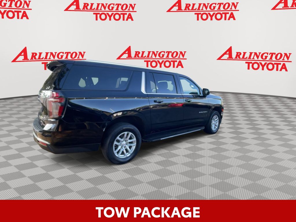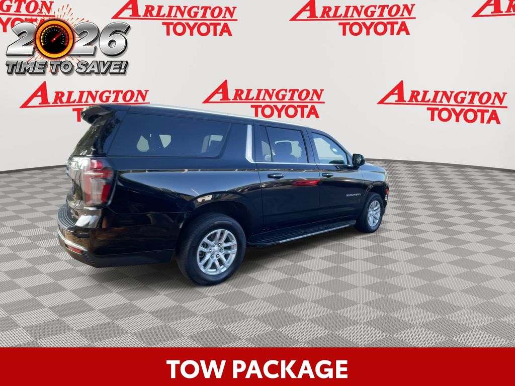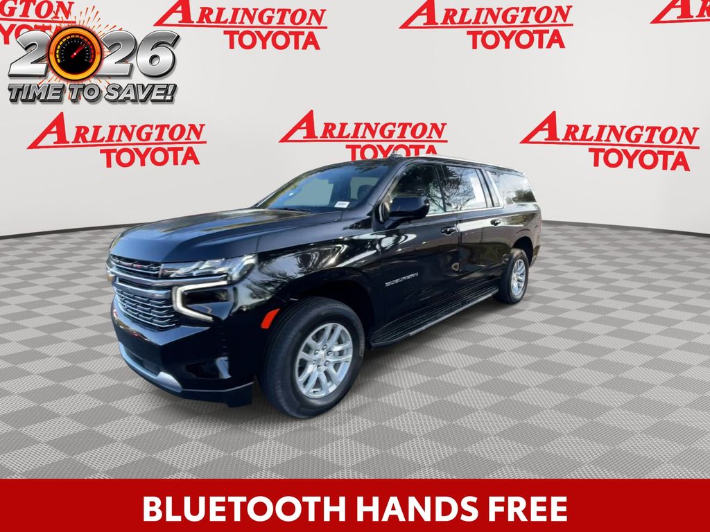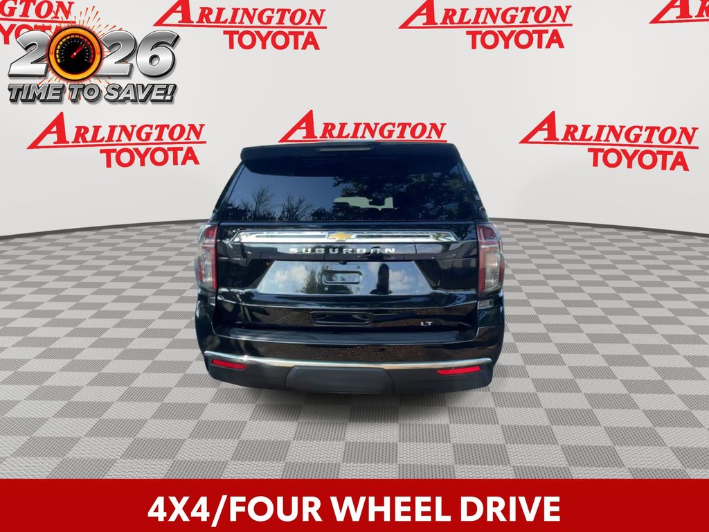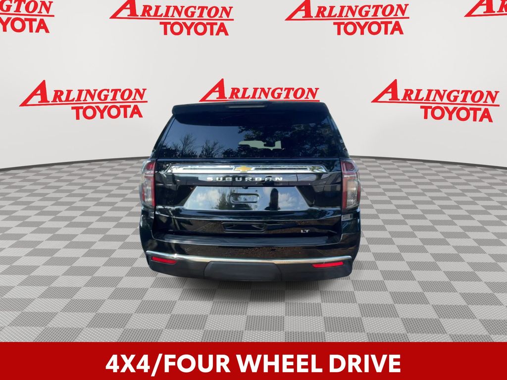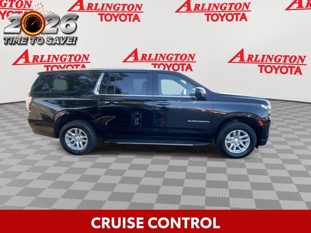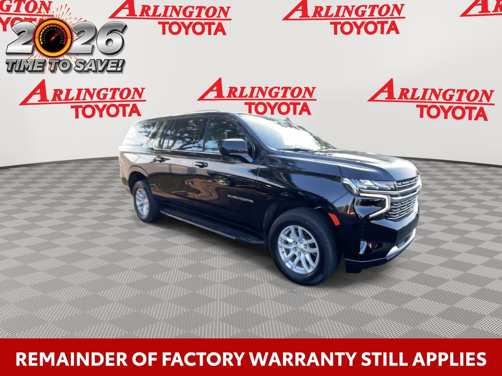 REMAINDER OF FACTORY WARRANTY STILL APPLIES, BACKUP CAMERA, BLUETOOTH HANDS FREE, ANDROID AUTO, APPLE CARPLAY, 4X4/FOUR WHEEL DRIVE, TOW PACKAGE, CRUISE CONTROL, NON SMOKER, Suburban LT 4x4, 4D Sport Utility, EcoTec3 5.3L V8, 10-Speed Automatic with Overdrive, 4WD, Black, Jet Black w/Perforated Leather Seating Surfaces, 10-Way Power Driver & Passenger Seat Adjusters, 1st & 2nd Row Color-Keyed Carpeted Floor Mats, 3.23 Rear Axle Ratio, 3rd row seats: split-bench, 4-Wheel Disc Brakes, 9 Speakers, ABS brakes, Air Conditioning, Alloy wheels, AM/FM radio: SiriusXM with 360L, Apple CarPlay/Android Auto, Auto High-beam Headlights, Auto-Dimming Inside Rear-View Mirror, Auto-dimming Rear-View mirror, Automatic temperature control, Bose 9-Speaker Stereo Audio System Feature, Brake assist, Bright Front & Rear Door Sill Plates, Bumpers: body-color, Color-Keyed Carpeting Floor Covering, Compass, Delay-off headlights, Deleted 3 Years of Remote Access, Driver & Front Outboard Passenger Airbags, Driver door bin, Driver vanity mirror, Dual front impact airbags, Dual front side impact airbags, Electronic Stability Control, Emergency communication system: OnStar and Chevrolet connected services capable, Enhanced Driver Information Center, Floor Console w/Storage Area, Four wheel independent suspension, Front anti-roll bar, Front Bucket Seats, Front Center Armrest, Front dual zone A/C, Front reading lights, Fully automatic headlights, Garage door transmitter, Hands-Free Rear Power Programmable Liftgate, Heated door mirrors, Heated Driver & Front Passenger Seats, Heated front seats, Illuminated entry, Infotainment Display, Leather-Appointed Seating, LED Daytime Running Lamps, Low tire pressure warning, Memory seat, Memory Settings For Driver, Navigation System, Occupant sensing airbag, Outside temperature display, Overhead airbag, Overhead console, Panic alarm, Passenger door bin, Passenger vanity mirror, Power door mirrors, Power driver seat, Power Liftgate, Power passenger seat, Power steering, Power windows, Preferred Equipment Group 1LT, Premium audio system: Chevrolet Infotainment 3 Premium, Premium Smooth Ride Suspension, Radio: Chevrolet Infotainment 3 Premium System, Rain sensing wipers, Rear air conditioning, Rear anti-roll bar, Rear reading lights, Rear seat center armrest, Rear window defroster, Rear window wiper, Remote keyless entry, Remote Start, Roof rack: xxxxxx, Security system, SiriusXM w/360L, Speed control, Speed-sensing steering, Split folding rear seat, Spoiler, Steering wheel mounted audio controls, Tachometer, Telescoping steering wheel, Tilt steering wheel, Traction control, Trip computer, Universal Home Remote, Variably intermittent wipers, Voltmeter, Wheels: 18" x 8.5" Bright Silver Painted Aluminum, Wireless Charging, Wrapped Steering Wheel, Suburban LT 4x4, 4D Sport Utility, EcoTec3 5.3L V8, 10-Speed Automatic with Overdrive, 4WD, Black, Jet Black w/Perforated Leather Seating Surfaces.
