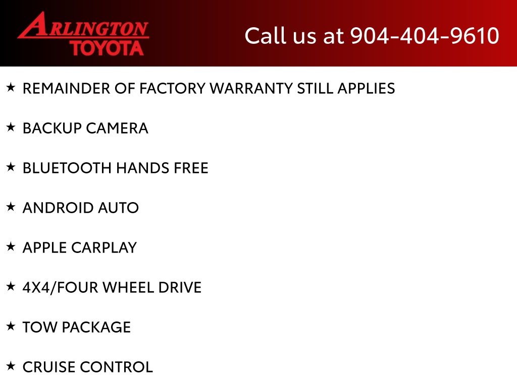 CALL FOR AVAILABILITY AND EXTRA OPTIONS ARLINGTON TOYOTA 904-721-3000.