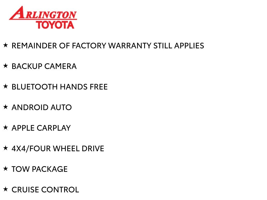 Prices do not include tax, tag, title, a pre-delivery service fee* of $894.00, an electronic registration filing fee* of $199.00 (*these charges represent costs and profits to the dealer for items such as inspecting, cleaning, and preparing documents related to the sale), and an Arlington Toyota Total Value Package of $1,889.00 (*these charges represent costs and profits to the dealer for items such as inspecting, cleaning, and preparing documents related to the sale). The final price is also subject to repair order reconditioning costs. Any price does not include dealer-installed accessories. All offers are mutually exclusive. All vehicles are subject to prior sale. See dealer for complete details.