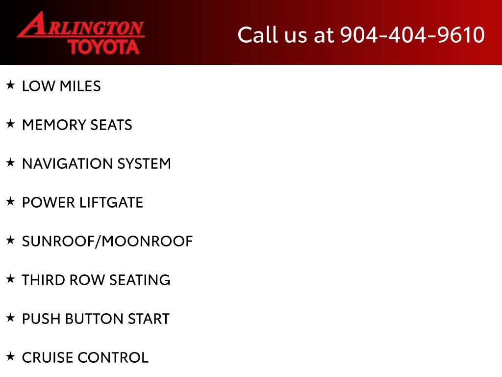 CALL FOR AVAILABILITY AND EXTRA OPTIONS ARLINGTON TOYOTA 904-721-3000.