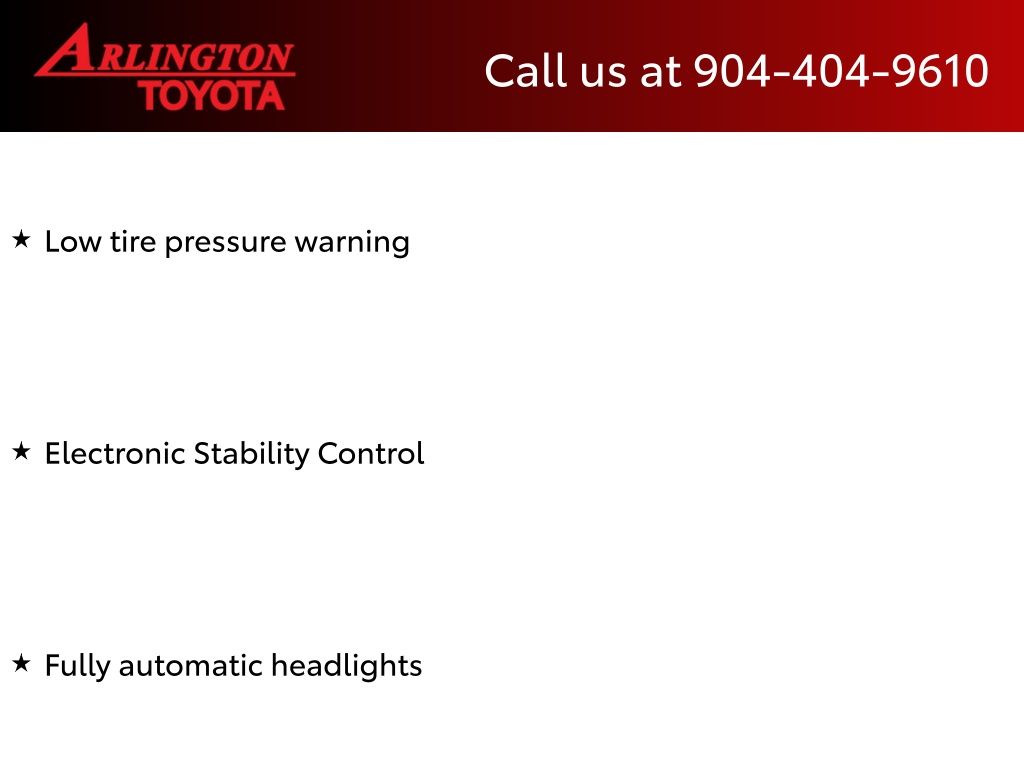 CALL FOR AVAILABILITY AND EXTRA OPTIONS ARLINGTON TOYOTA 904-721-3000.