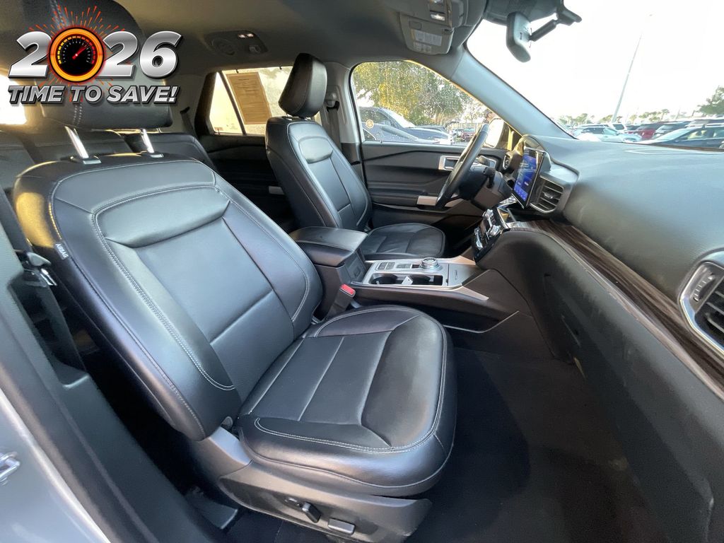 CERTIFIED BY CARFAX - ONE OWNER, REMAINDER OF FACTORY WARRANTY STILL APPLIES, BACKUP CAMERA, BLUETOOTH HANDS FREE, ANDROID AUTO, APPLE CARPLAY, POWER SEATS, THIRD ROW SEATING, PUSH BUTTON START, CRUISE CONTROL, NON SMOKER, Explorer Limited, 4D Sport Utility, 2.3L EcoBoost I-4, 10-Speed Automatic, RWD, Iconic Silver Metallic, Ebony w/Leather Heated/Ventilated Captain's Chairs, ABS brakes, Electronic Stability Control, Four wheel independent suspension, Front dual zone A/C, Fully automatic headlights, Low tire pressure warning, Remote keyless entry, Steering wheel mounted audio controls, 12 Speakers, 20" Premium Painted Aluminum Wheels, 2nd Row 35/30/35 Bench w/E-Z Entry & Armrest, 3.58 Non-Limited-Slip Rear Axle Ratio, 360-Degree Camera Credit, 3rd row seats: bench, 4-Wheel Disc Brakes, 4G LTE Wi-Fi Hotspot Credit, Air Conditioning, Alloy wheels, AM/FM radio: SiriusXM, Auto High-beam Headlights, Auto-dimming Rear-View mirror, Automatic temperature control, Brake assist, Bumpers: body-color, Compass, Delay-off headlights, Driver door bin, Driver vanity mirror, Dual front impact airbags, Dual front side impact airbags, Equipment Group 300A, Exterior Parking Camera Rear, FordPass Connect, Front anti-roll bar, Front Bucket Seats, Front Center Armrest, Front fog lights, Front reading lights, Garage door transmitter, Heated door mirrors, Heated front seats, Heated rear seats, Heated steering wheel, Illuminated entry, Knee airbag, Leather Heated/Ventilated Captain's Chairs, Leather steering wheel, Navigation System, Occupant sensing airbag, Outside temperature display, Overhead airbag, Overhead console, Panic alarm, Passenger door bin, Passenger vanity mirror, Power door mirrors, Power driver seat, Power passenger seat, Power steering, Power windows, Radio data system, Radio: B&O Sound System by Bang & Olufsen, Rain sensing wipers, Rear air conditioning, Rear anti-roll bar, Rear reading lights, Rear window defroster, Rear window wiper, Security system, Speed control, Speed-sensing steering, Speed-Sensitive Wipers, Split folding rear seat, Spoiler, SYNC 3 Communications & Entertainment System, SYNC 3/Apple CarPlay/Android Auto, Tachometer, Telescoping steering wheel, Tilt steering wheel, Traction control, Trip computer, Variably intermittent wipers, Ventilated front seats, Voice-Activated Touchscreen Navigation System, Explorer Limited, 4D Sport Utility, 2.3L EcoBoost I-4, 10-Speed Automatic, RWD, Iconic Silver Metallic, Ebony w/Leather Heated/Ventilated Captain's Chairs, ABS brakes, Electronic Stability Control, Four wheel independent suspension, Front dual zone A/C, Fully automatic headlights, Low tire pressure warning, Remote keyless entry, Steering wheel mounted audio controls.