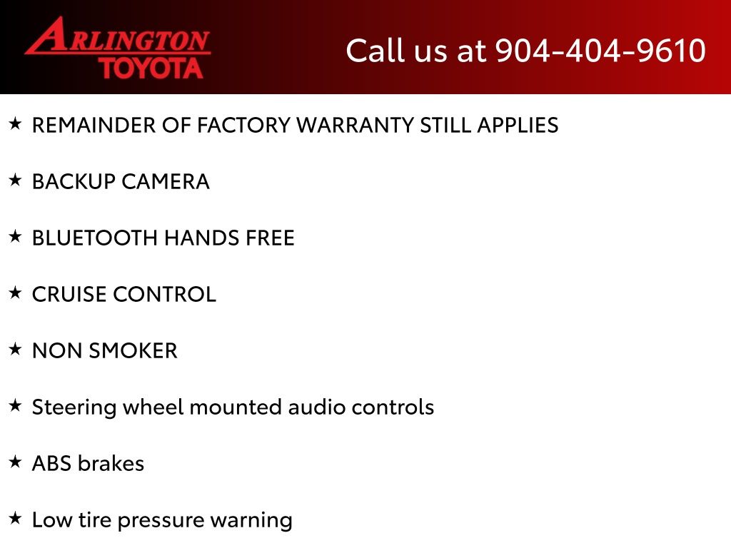 CALL FOR AVAILABILITY AND EXTRA OPTIONS ARLINGTON TOYOTA 904-721-3000.
