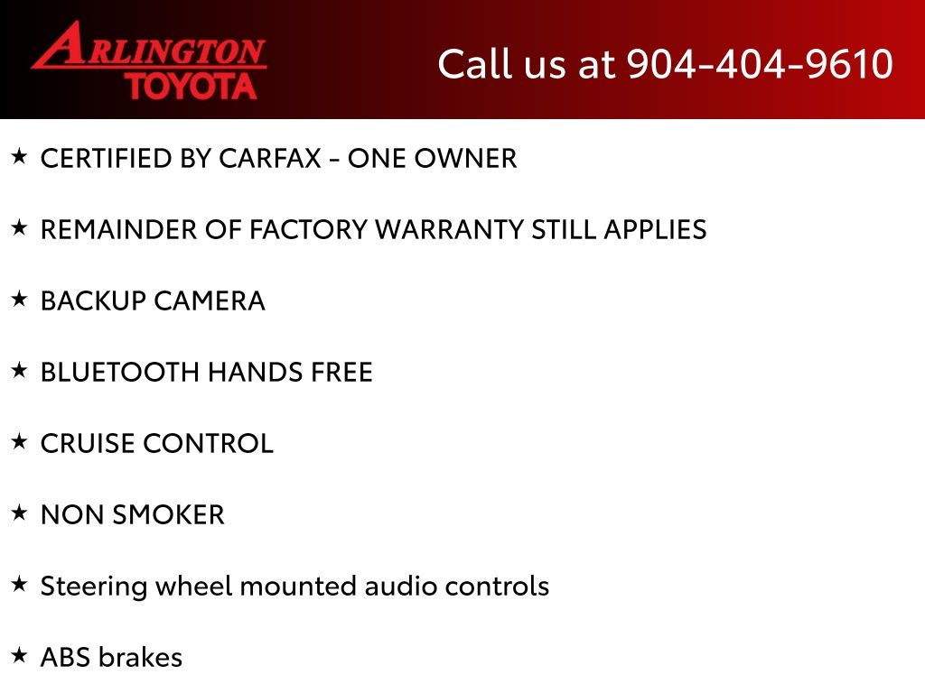 CALL FOR AVAILABILITY AND EXTRA OPTIONS ARLINGTON TOYOTA 904-721-3000.