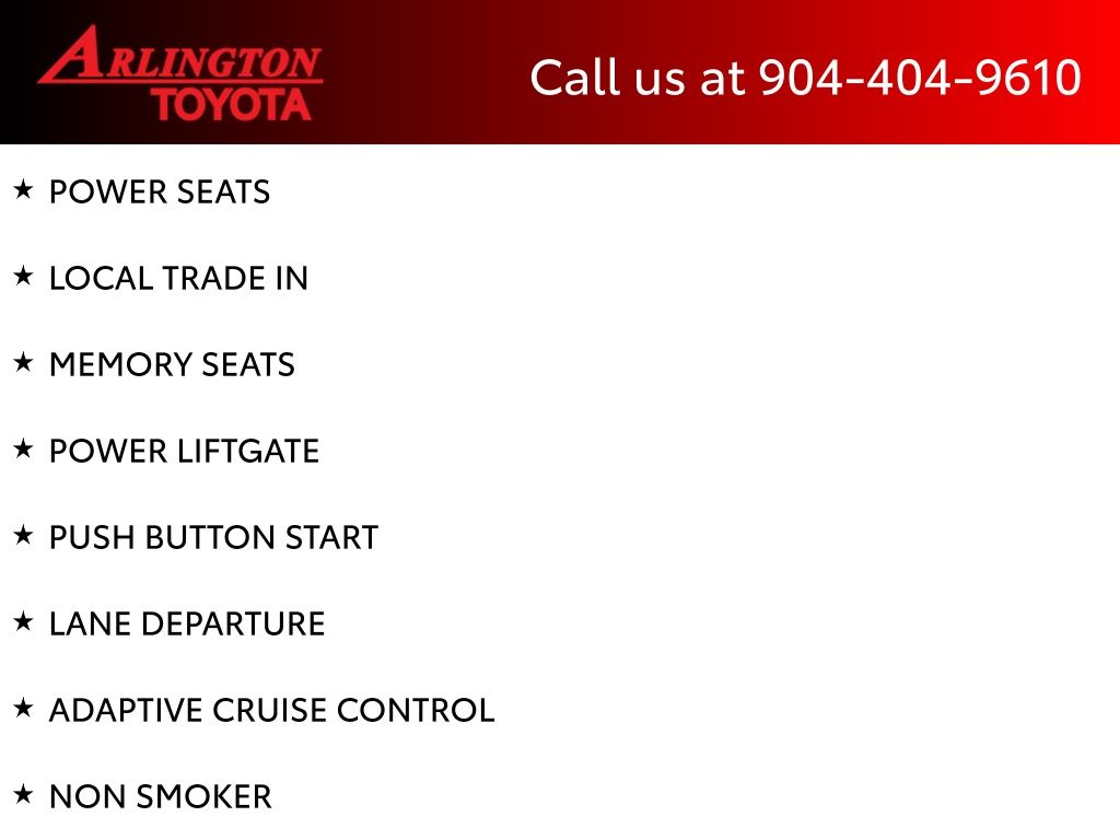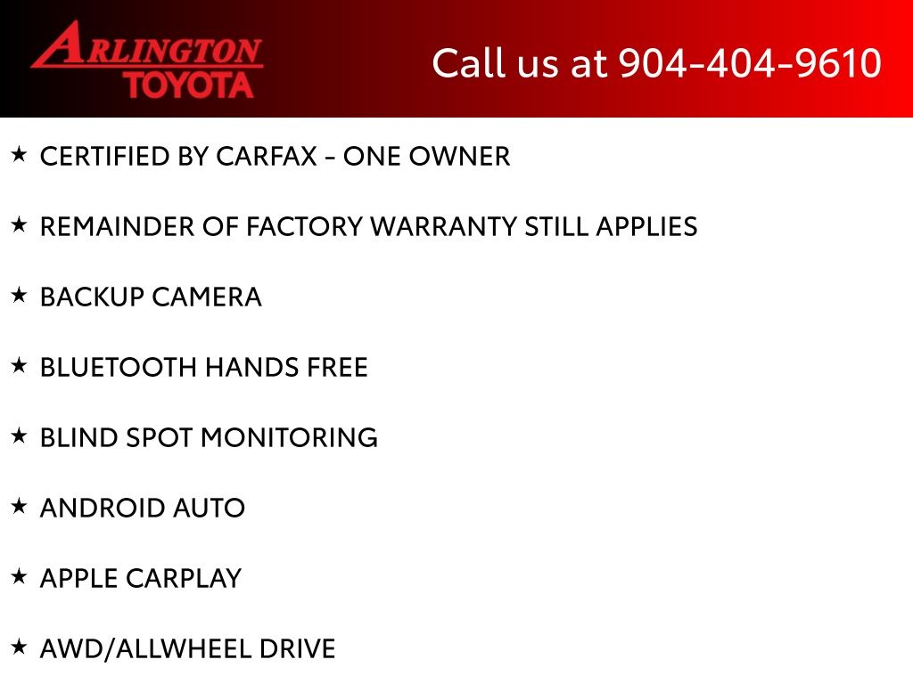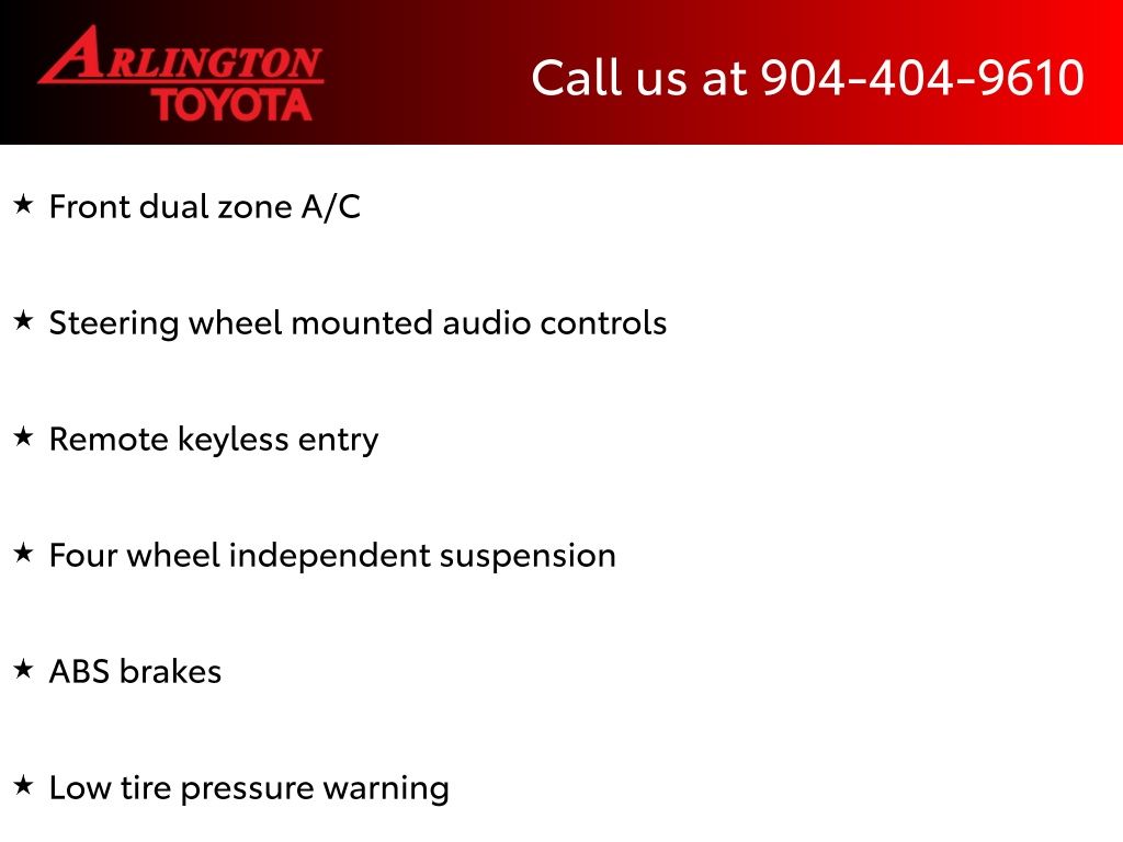 CALL FOR AVAILABILITY AND EXTRA OPTIONS ARLINGTON TOYOTA 904-721-3000.
