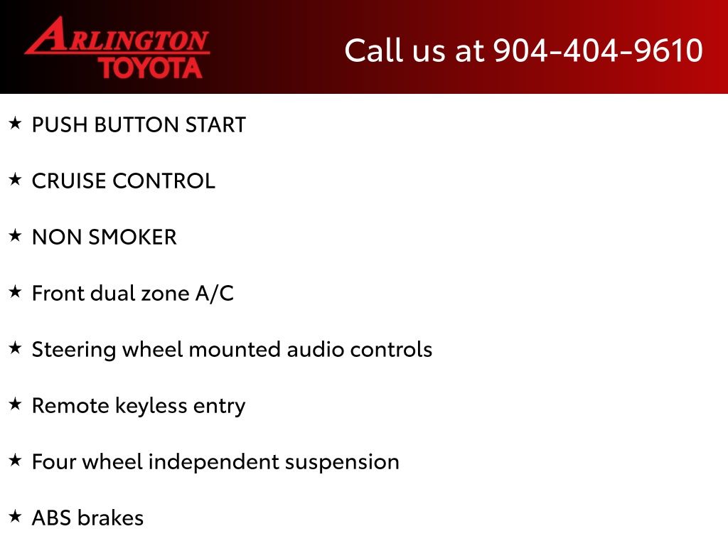 CALL FOR AVAILABILITY AND EXTRA OPTIONS ARLINGTON TOYOTA 904-721-3000.