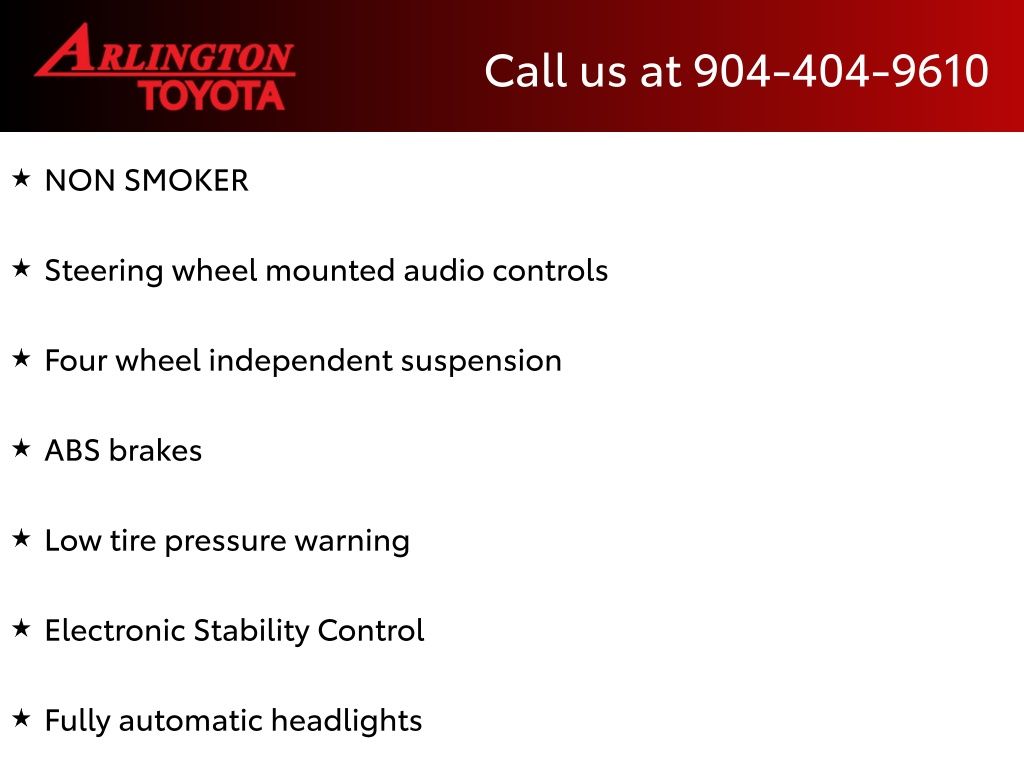 CALL FOR AVAILABILITY AND EXTRA OPTIONS ARLINGTON TOYOTA 904-721-3000.