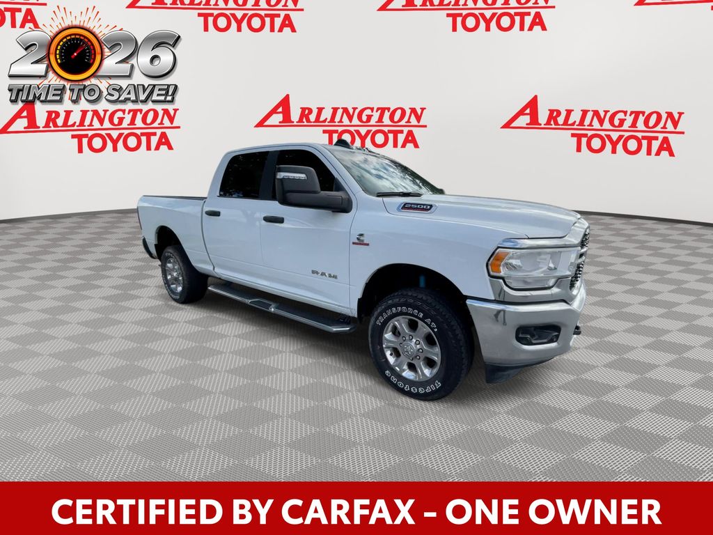 CERTIFIED BY CARFAX - ONE OWNER, REMAINDER OF FACTORY WARRANTY STILL APPLIES, BACKUP CAMERA, BLUETOOTH HANDS FREE, ANDROID AUTO, APPLE CARPLAY, 4X4/FOUR WHEEL DRIVE, BED LINER, LOW MILES, RUNNING BOARDS, TOW PACKAGE, TURBO DIESEL, PUSH BUTTON START, NON SMOKER, 2500 Big Horn 4X4, 4D Crew Cab, Cummins 6.7L I6 Turbodiesel, 6-Speed Automatic, 4WD, Bright White Clearcoat, Diesel Gray/Black Cloth, ABS brakes, Electronic Stability Control, Front Performance Tuned Shock Absorbers, Fully automatic headlights, Low tire pressure warning, 2 Way Rear Headrest Seat, 220 Amp Alternator, 2nd Row In Floor Storage Bins, 3.73 Axle Ratio, 4 Way Front Headrests, 4-Wheel Disc Brakes, 40/20/40 Split Bench Seat, 4G LTE Wi-Fi Hot Spot, 6 Speakers, 8.4" Touchscreen Display, Active Noise Control System, Air Conditioning, Anti-Spin Differential Rear Axle, Apple CarPlay, Auto Power-Folding Mirrors, Big Horn IP Badge, Black Exterior Mirrors, Bluetooth Handsfree Phone & Audio, Brake assist, Bumpers: chrome, Center Hub, Center Stack Storage Drawer, Chrome Flat Cab-Length Side Steps, Cloth 40/20/40 Bench Seat, Cold Weather Group, Compass, Connectivity - US/Canada, Delay-off headlights, Driver door bin, Dual front impact airbags, Dual front side impact airbags, Dual Glove Boxes, Electronically Controlled Throttle, Engine Block Heater, Exterior Mirrors Courtesy Lamps, Exterior Mirrors w/Heating Element, Exterior Mirrors w/Supplemental Signals, Foam Bottle Insert (Door Trim Panel), Footwell Courtesy Lamp, For Details, Visit DriveUconnect.com, For More Info, Call 800-643-2112, Forward & Reverse Utility Lights, Front anti-roll bar, Front Armrest w/Cupholders, Front Center Armrest w/Storage, Front Center Seat Cushion Storage, Front Fog Lamps, Front License Plate Bracket, Front reading lights, Front Seat Back Map Pockets, Global Telematics Box Module (TBM), Glove Box Lamp, Google Android Auto, GPS Antenna Input, Heated door mirrors, Heavy Duty Snow Plow Prep Group, Hill Descent Control, Illuminated entry, Integrated Center Stack Radio, Integrated Voice Command w/Bluetooth, Leather Wrapped Steering Wheel, Level 1 Equipment Group, Locking Lower Glove Box, Manual Adjust 4-Way Driver Seat, Manual Adjust 4-Way Front Passenger Seat, Mirror Running Lights, MOPAR Spray In Bedliner, MOPAR Winter Front Grille Cover, Occupant sensing airbag, Off Road Package, Outside temperature display, Overhead airbag, Overhead console, Panic alarm, ParkSense Front/Rear Park Assist System, ParkView Rear Back-Up Camera, Passenger door bin, Passenger vanity mirror, Power 2-Way Driver Lumbar Adjust, Power Adjust 8-Way Driver Seat, Power Adjust Mirrors, Power Adjustable Convex Aux Mirrors, Power door mirrors, Power Heated Fold Telescope Mirrors, Power steering, Power Telescoping Mirrors, Power windows, Premium Cloth 40/20/40 Bench Seat (DISC), Quick Order Package 2GZ Big Horn, Quick Order Package 2HZ Big Horn, Radio data system, Radio: Uconnect 3 w/5" Display, Radio: Uconnect 5 W w/8.4" Display, Rear 60/40 Folding Seat, Rear anti-roll bar, Rear Backup Alarm, Rear Dome w/On/Off Switch Lamp, Rear Folding Seat, Rear Performance Tuned Shock Absorbers, Rear seat center armrest, Rear step bumper, Rear Window Defroster, Remote keyless entry, Remote USB Port - Charge Only, Selectable Tire Fill Alert, SiriusXM Radio Service, SiriusXM Satellite Radio, Speed control, Steering Wheel Mounted Audio Controls, Storage Tray, Tachometer, Tilt steering wheel, Tip Start, Tow Hooks, Traction control, Trip computer, Turn signal indicator mirrors, Variably intermittent wipers, Voltmeter, Wheels: 18" x 8.0" Polished Aluminum, Wheels: 18" x 8.0" Steel Chrome Clad, 2500 Big Horn 4X4, 4D Crew Cab, Cummins 6.7L I6 Turbodiesel, 6-Speed Automatic, 4WD, Bright White Clearcoat, Diesel Gray/Black Cloth, ABS brakes, Electronic Stability Control, Front Performance Tuned Shock Absorbers, Fully automatic headlights, Low tire pressure warning.