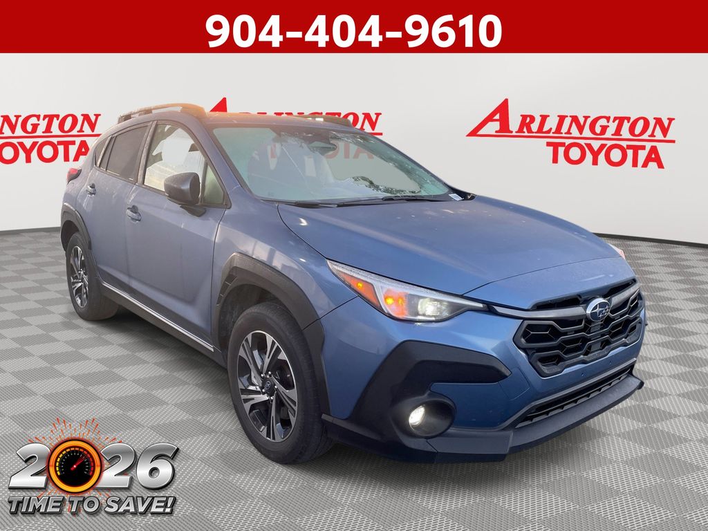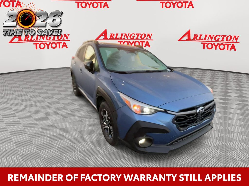 REMAINDER OF FACTORY WARRANTY STILL APPLIES, BACKUP CAMERA, BLUETOOTH HANDS FREE, BLIND SPOT MONITORING, ANDROID AUTO, APPLE CARPLAY, SUNROOF/MOONROOF, PUSH BUTTON START, CRUISE CONTROL, NON SMOKER, Crosstrek Premium AWD, 4D Sport Utility, 2.0L 4-Cylinder DOHC 16V, Lineartronic CVT, AWD, Horizon Blue Pearl, Black w/Premium Cloth Upholstery, 10-Way Power Driver's Seat, ABS brakes, All-Weather Package, Blind Spot Detection w/Rear Cross-Traffic Alert, BSD/RCTA & Moonrf & All Weather Pkg & Pwr Dr. Seat, Four wheel independent suspension, Fully automatic headlights, Heated Exterior Mirrors, Heated Front Seats, Heated Wipers, Low tire pressure warning, Power Moonroof, Steering wheel mounted audio controls, Turn signal indicator mirrors, 3.90 Axle Ratio, 4-Wheel Disc Brakes, 6 Speakers, Air Conditioning, Alloy wheels, AM/FM radio: SiriusXM, Anti-whiplash front head restraints, Auto High-beam Headlights, Automatic temperature control, Brake assist, Bumpers: body-color, Driver door bin, Driver vanity mirror, Dual front impact airbags, Dual front side impact airbags, Electronic Stability Control, Exterior Parking Camera Rear, Front anti-roll bar, Front Bucket Seats, Front Center Armrest, Front dual zone A/C, Front fog lights, Front reading lights, Illuminated entry, Knee airbag, Occupant sensing airbag, Outside temperature display, Overhead airbag, Overhead console, Panic alarm, Passenger door bin, Passenger vanity mirror, Power door mirrors, Power steering, Power windows, Premium Cloth Upholstery, Radio data system, Radio: Subaru STARLINK 11.6" Multimedia Plus Sys, Rear anti-roll bar, Rear seat center armrest, Rear window defroster, Rear window wiper, Remote keyless entry, Security system, Speed control, Speed-sensing steering, Split folding rear seat, Spoiler, STARLINK/Apple CarPlay/Android Auto, Tachometer, Telescoping steering wheel, Tilt steering wheel, Traction control, Trip computer, Variably intermittent wipers, Wheels: 17" x 7.0J Dark Gray Aluminum Alloy, Crosstrek Premium AWD, 4D Sport Utility, 2.0L 4-Cylinder DOHC 16V, Lineartronic CVT, AWD, Horizon Blue Pearl, Black w/Premium Cloth Upholstery, 10-Way Power Driver's Seat, ABS brakes, All-Weather Package, Blind Spot Detection w/Rear Cross-Traffic Alert, BSD/RCTA & Moonrf & All Weather Pkg & Pwr Dr. Seat, Four wheel independent suspension, Fully automatic headlights, Heated Exterior Mirrors, Heated Front Seats, Heated Wipers, Low tire pressure warning, Power Moonroof, Steering wheel mounted audio controls, Turn signal indicator mirrors.
