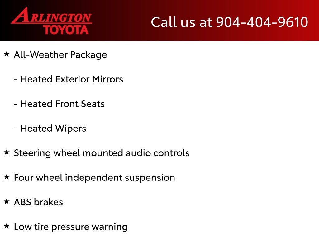 CALL FOR AVAILABILITY AND EXTRA OPTIONS ARLINGTON TOYOTA 904-721-3000.