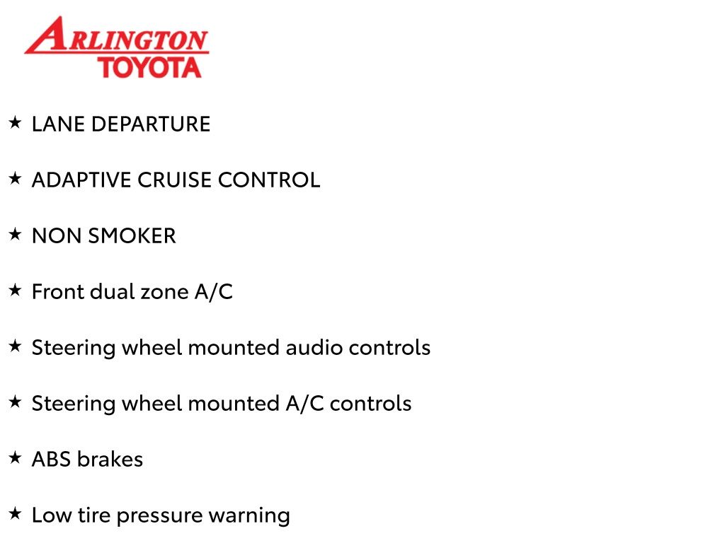 Prices do not include tax, tag, title, a pre-delivery service fee* of $894.00, an electronic registration filing fee* of $199.00 (*these charges represent costs and profits to the dealer for items such as inspecting, cleaning, and preparing documents related to the sale), and an Arlington Toyota Total Value Package of $1,889.00 (*these charges represent costs and profits to the dealer for items such as inspecting, cleaning, and preparing documents related to the sale). The final price is also subject to repair order reconditioning costs. Any price does not include dealer-installed accessories. All offers are mutually exclusive. All vehicles are subject to prior sale. See dealer for complete details.