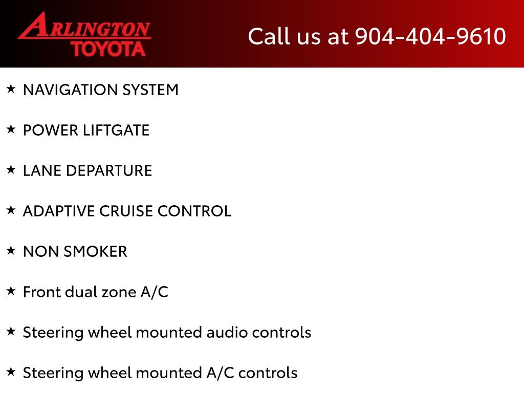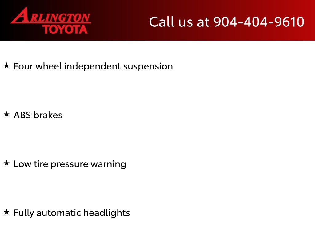 CALL FOR AVAILABILITY AND EXTRA OPTIONS ARLINGTON TOYOTA 904-721-3000.