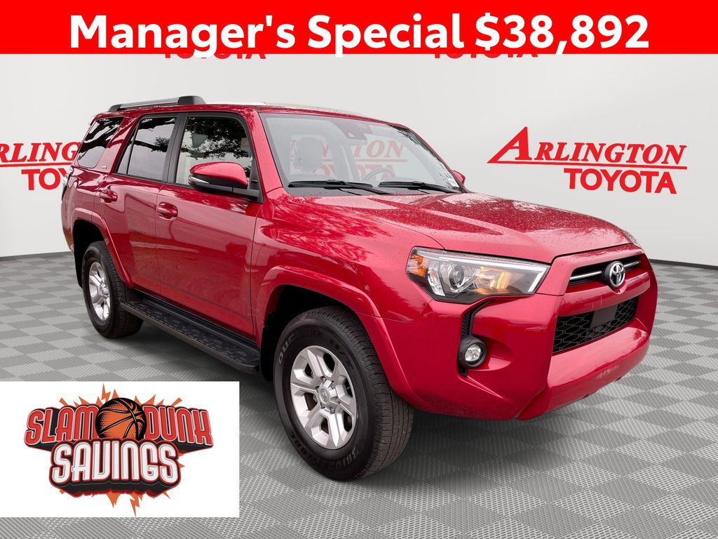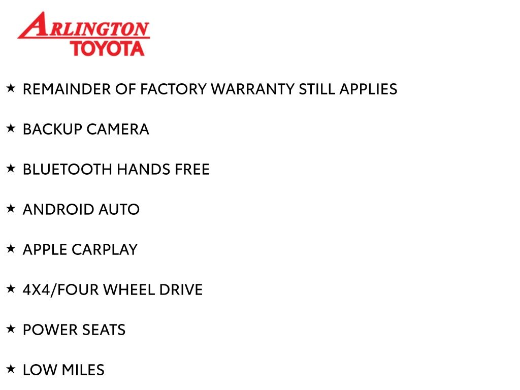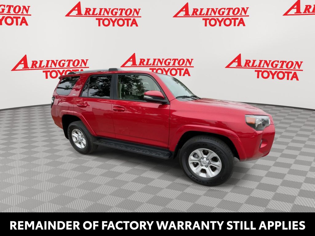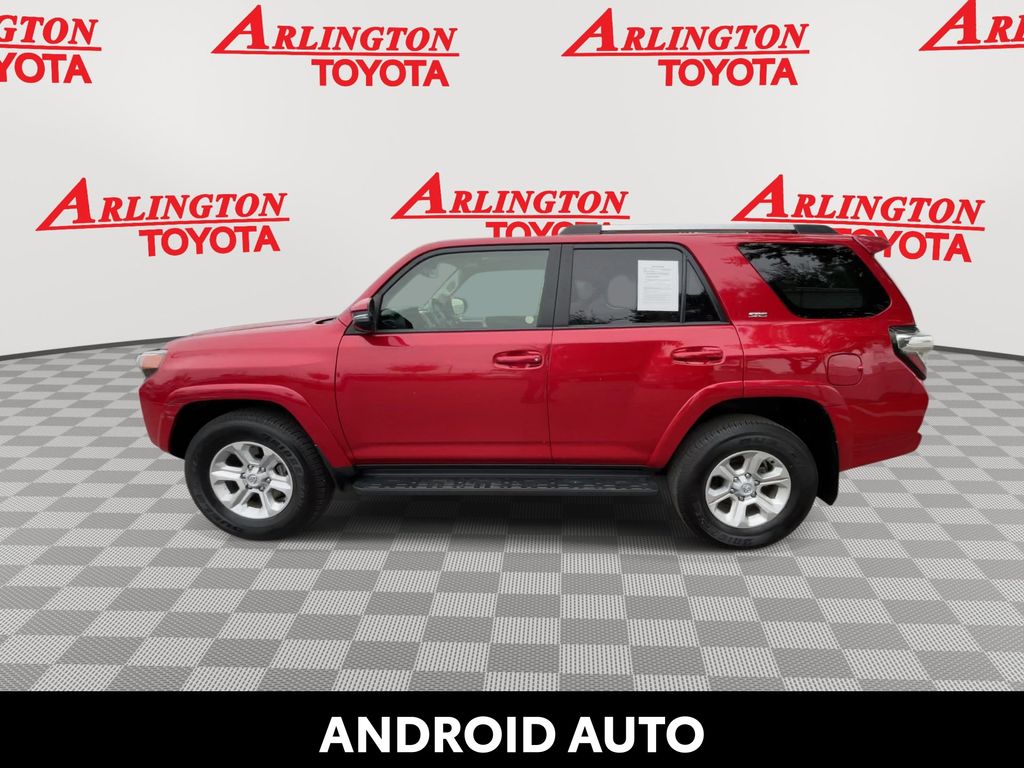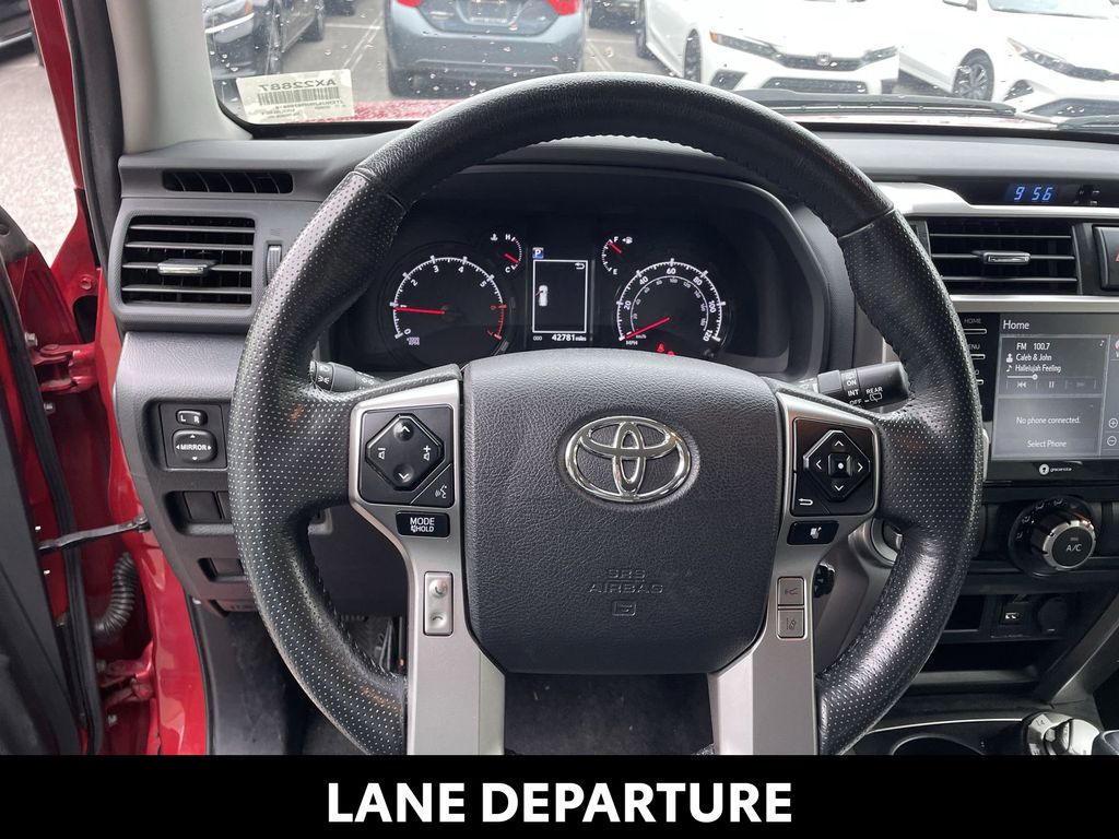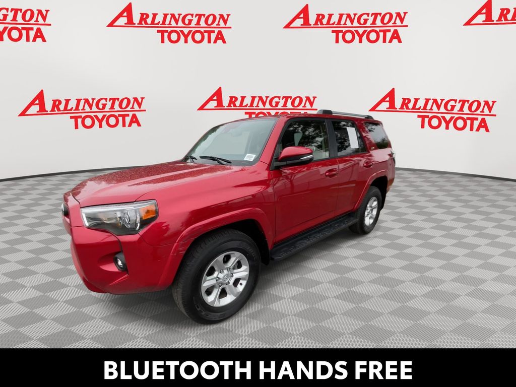 REMAINDER OF FACTORY WARRANTY STILL APPLIES, BACKUP CAMERA, BLUETOOTH HANDS FREE, ANDROID AUTO, APPLE CARPLAY, 4X4/FOUR WHEEL DRIVE, POWER SEATS, LOW MILES, NAVIGATION SYSTEM, RUNNING BOARDS, TOW PACKAGE, PUSH BUTTON START, LANE DEPARTURE, ADAPTIVE CRUISE CONTROL, NON SMOKER, 4Runner SR5 Premium 4x4, 4D Sport Utility, 4.0L V6 DOHC 24V, 5-Speed with ECT, 4WD, Barcelona Red Metallic, Black/Graphite w/SofTex Seat Trim, ABS brakes, Electronic Stability Control, Garage Door Opener, Heated Outside Rear-View Mirrors, Low tire pressure warning, Remote keyless entry, SR5 Premium Package, Steering wheel mounted audio controls, 17" 6-Spoke Alloy Wheels, 3.727 Axle Ratio, 4-Wheel Disc Brakes, 8 Speakers, Air Conditioning, Alloy wheels, AM/FM radio: SiriusXM, Anti-whiplash front head restraints, Apple CarPlay/Android Auto, Auto High-beam Headlights, Auto-dimming Rear-View mirror, Brake assist, Bumpers: body-color, Compass, Driver door bin, Driver vanity mirror, Dual front impact airbags, Dual front side impact airbags, Exterior Parking Camera Rear, Front anti-roll bar, Front Bucket Seats, Front Center Armrest, Front fog lights, Front reading lights, Front wheel independent suspension, Garage door transmitter: HomeLink, Heated door mirrors, Heated Front Bucket Seats, Heated front seats, Heated steering wheel, Illuminated entry, Knee airbag, Leather Shift Knob, Leather steering wheel, Navigation System, Occupant sensing airbag, Outside temperature display, Overhead airbag, Overhead console, Panic alarm, Passenger door bin, Passenger vanity mirror, Power door mirrors, Power driver seat, Power passenger seat, Power steering, Power windows, Radio: Premium Audio, Rear anti-roll bar, Rear seat center armrest, Rear window defroster, Rear window wiper, Rigid Running Boards, Security system, SofTex Seat Trim, Speed control, Speed-sensing steering, Split folding rear seat, Spoiler, Tachometer, Telescoping steering wheel, Tilt steering wheel, Traction control, Trip computer, Turn signal indicator mirrors, Variably intermittent wipers, 4Runner SR5 Premium 4x4, 4D Sport Utility, 4.0L V6 DOHC 24V, 5-Speed with ECT, 4WD, Barcelona Red Metallic, Black/Graphite w/SofTex Seat Trim, ABS brakes, Electronic Stability Control, Garage Door Opener, Heated Outside Rear-View Mirrors, Low tire pressure warning, Remote keyless entry, SR5 Premium Package, Steering wheel mounted audio controls.