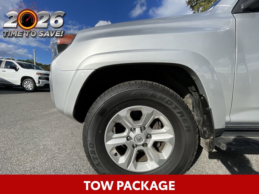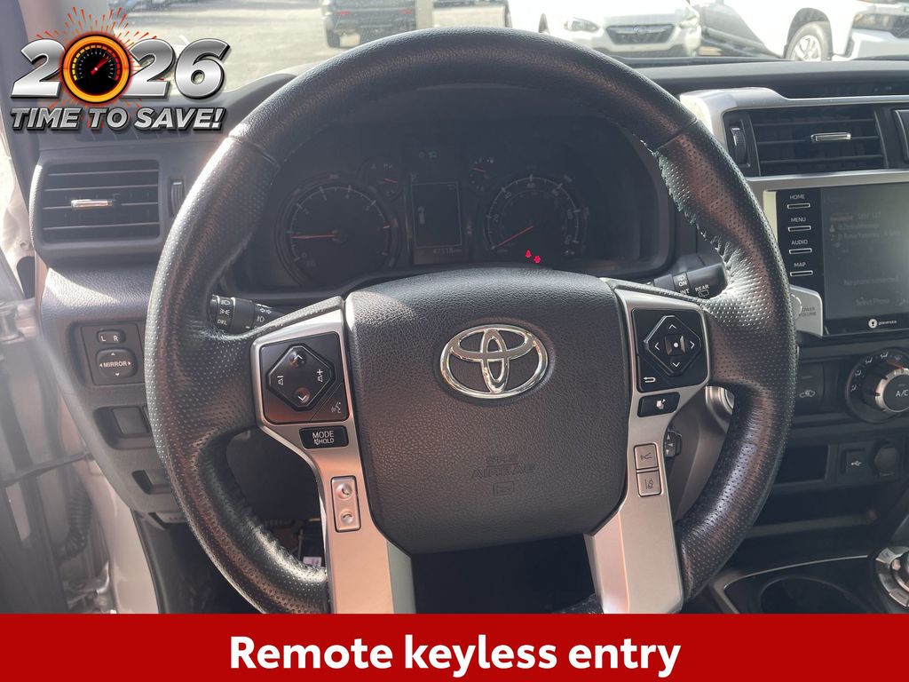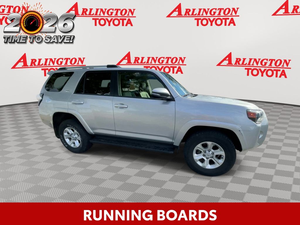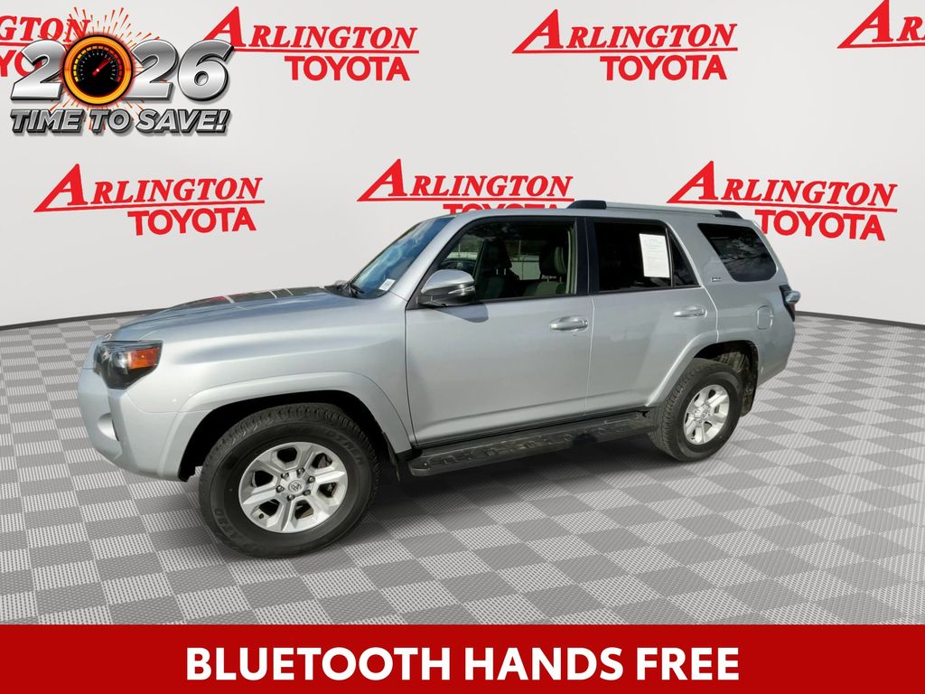REMAINDER OF FACTORY WARRANTY STILL APPLIES, BACKUP CAMERA, BLUETOOTH HANDS FREE, ANDROID AUTO, APPLE CARPLAY, 4X4/FOUR WHEEL DRIVE, POWER SEATS, RUNNING BOARDS, TOW PACKAGE, LANE DEPARTURE, ADAPTIVE CRUISE CONTROL, NON SMOKER, 4Runner SR5 Premium 4X4, 4D Sport Utility, 4.0L V6 DOHC 24V, 5-Speed with ECT, 4WD, Classic Silver Metallic, Black/Graphite w/Fabric Seat Trim, ABS brakes, Electronic Stability Control, Low tire pressure warning, Remote keyless entry, Steering wheel mounted audio controls, 17" 6-Spoke Alloy Wheels, 3.727 Axle Ratio, 4-Wheel Disc Brakes, 8 Speakers, Air Conditioning, Alloy wheels, AM/FM radio: SiriusXM, Anti-whiplash front head restraints, Apple CarPlay/Android Auto, Auto High-beam Headlights, Auto-dimming Rear-View mirror, Brake assist, Bumpers: body-color, Compass, Driver door bin, Driver vanity mirror, Dual front impact airbags, Dual front side impact airbags, Exterior Parking Camera Rear, Front anti-roll bar, Front Bucket Seats, Front Center Armrest, Front fog lights, Front reading lights, Front wheel independent suspension, Garage Door Opener, Garage door transmitter: HomeLink, Heated door mirrors, Heated Front Bucket Seats, Heated front seats, Heated Outside Rear-View Mirrors, Heated steering wheel, Illuminated entry, Knee airbag, Leather Shift Knob, Leather steering wheel, Navigation System, Occupant sensing airbag, Outside temperature display, Overhead airbag, Overhead console, Panic alarm, Passenger door bin, Passenger vanity mirror, Power door mirrors, Power driver seat, Power passenger seat, Power steering, Power windows, Radio: Premium Audio, Rear anti-roll bar, Rear seat center armrest, Rear window defroster, Rear window wiper, Rigid Running Boards, Security system, SofTex Seat Trim, Speed control, Speed-sensing steering, Split folding rear seat, Spoiler, SR5 Premium Package, Tachometer, Telescoping steering wheel, Tilt steering wheel, Traction control, Trip computer, Turn signal indicator mirrors, Variably intermittent wipers, 4Runner SR5 Premium 4X4, 4D Sport Utility, 4.0L V6 DOHC 24V, 5-Speed with ECT, 4WD, Classic Silver Metallic, Black/Graphite w/Fabric Seat Trim, ABS brakes, Electronic Stability Control, Low tire pressure warning, Remote keyless entry, Steering wheel mounted audio controls.