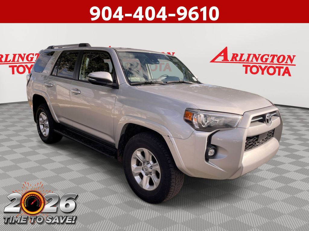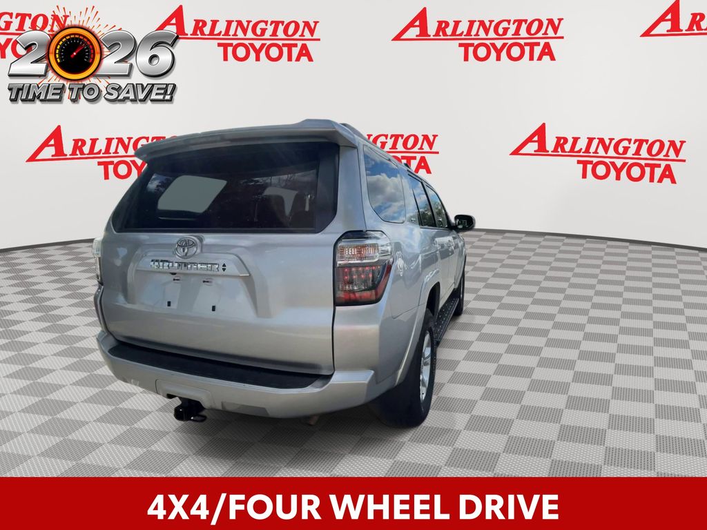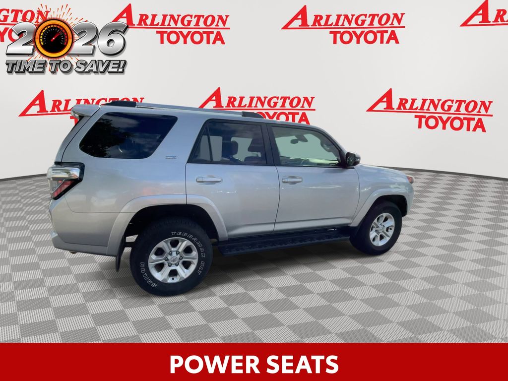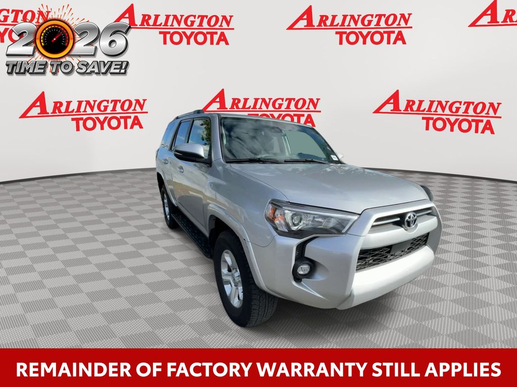REMAINDER OF FACTORY WARRANTY STILL APPLIES, BACKUP CAMERA, BLUETOOTH HANDS FREE, ANDROID AUTO, APPLE CARPLAY, 4X4/FOUR WHEEL DRIVE, POWER SEATS, RUNNING BOARDS, TOW PACKAGE, LANE DEPARTURE, ADAPTIVE CRUISE CONTROL, NON SMOKER, 4Runner SR5 Premium 4X4, 4D Sport Utility, 4.0L V6 DOHC 24V, 5-Speed with ECT, 4WD, Classic Silver Metallic, Black/Graphite w/Fabric Seat Trim, ABS brakes, Electronic Stability Control, Low tire pressure warning, Remote keyless entry, Steering wheel mounted audio controls, 17" 6-Spoke Alloy Wheels, 3.727 Axle Ratio, 4-Wheel Disc Brakes, 8 Speakers, Air Conditioning, Alloy wheels, AM/FM radio: SiriusXM, Anti-whiplash front head restraints, Apple CarPlay/Android Auto, Auto High-beam Headlights, Auto-dimming Rear-View mirror, Brake assist, Bumpers: body-color, Compass, Driver door bin, Driver vanity mirror, Dual front impact airbags, Dual front side impact airbags, Exterior Parking Camera Rear, Front anti-roll bar, Front Bucket Seats, Front Center Armrest, Front fog lights, Front reading lights, Front wheel independent suspension, Garage Door Opener, Garage door transmitter: HomeLink, Heated door mirrors, Heated Front Bucket Seats, Heated front seats, Heated Outside Rear-View Mirrors, Heated steering wheel, Illuminated entry, Knee airbag, Leather Shift Knob, Leather steering wheel, Navigation System, Occupant sensing airbag, Outside temperature display, Overhead airbag, Overhead console, Panic alarm, Passenger door bin, Passenger vanity mirror, Power door mirrors, Power driver seat, Power passenger seat, Power steering, Power windows, Radio: Premium Audio, Rear anti-roll bar, Rear seat center armrest, Rear window defroster, Rear window wiper, Rigid Running Boards, Security system, SofTex Seat Trim, Speed control, Speed-sensing steering, Split folding rear seat, Spoiler, SR5 Premium Package, Tachometer, Telescoping steering wheel, Tilt steering wheel, Traction control, Trip computer, Turn signal indicator mirrors, Variably intermittent wipers, 4Runner SR5 Premium 4X4, 4D Sport Utility, 4.0L V6 DOHC 24V, 5-Speed with ECT, 4WD, Classic Silver Metallic, Black/Graphite w/Fabric Seat Trim, ABS brakes, Electronic Stability Control, Low tire pressure warning, Remote keyless entry, Steering wheel mounted audio controls.