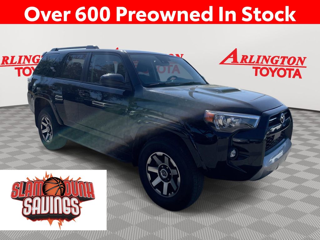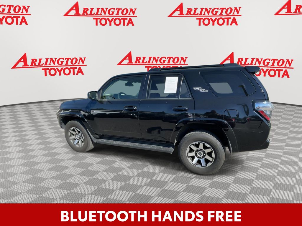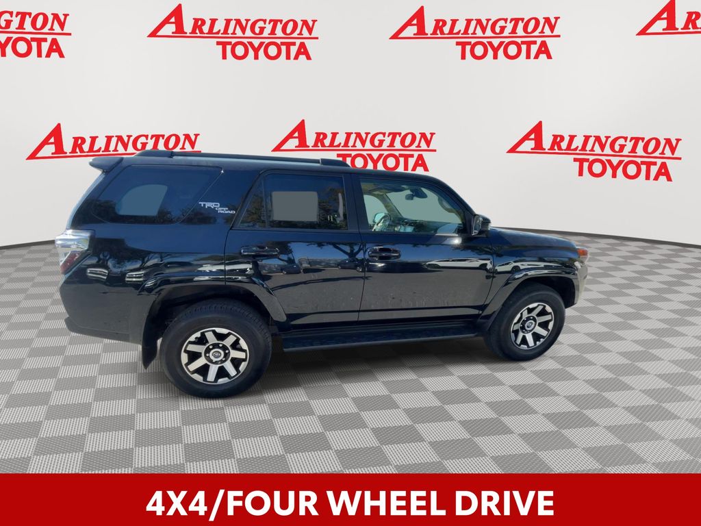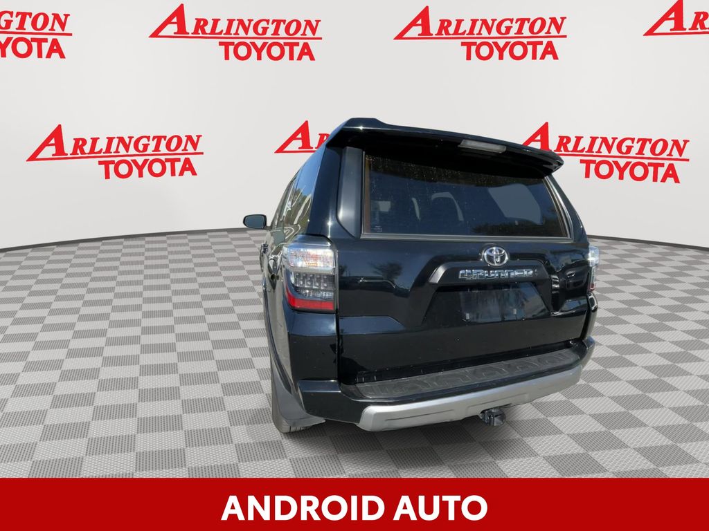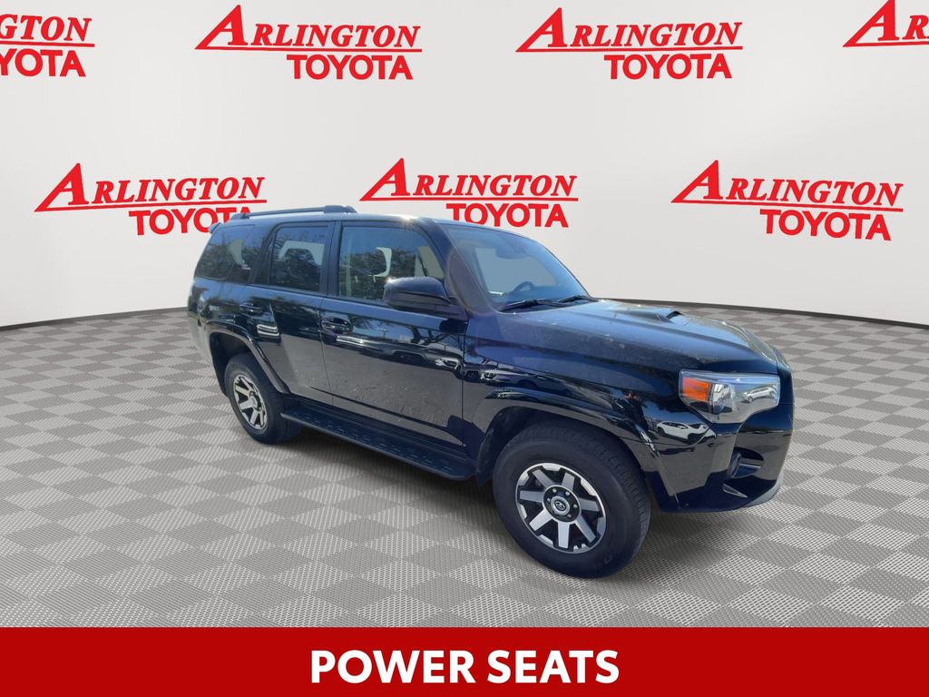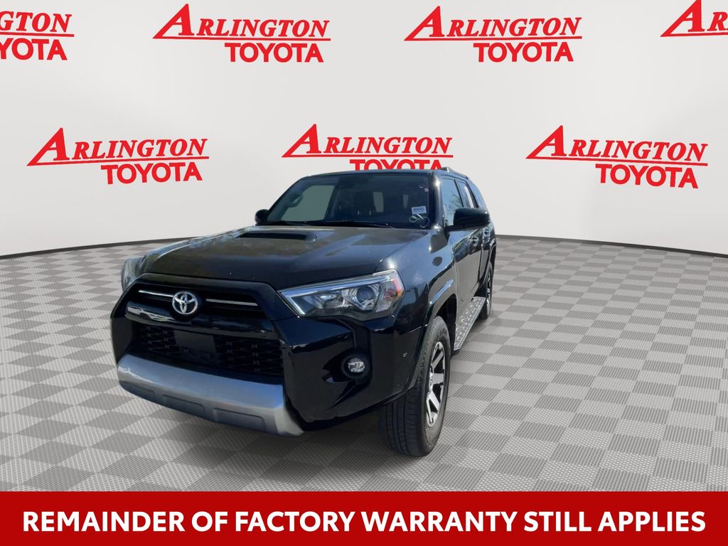 CERTIFIED BY CARFAX - ONE OWNER, REMAINDER OF FACTORY WARRANTY STILL APPLIES, BACKUP CAMERA, BLUETOOTH HANDS FREE, ANDROID AUTO, APPLE CARPLAY, 4X4/FOUR WHEEL DRIVE, POWER SEATS, RUNNING BOARDS, TOW PACKAGE, PUSH BUTTON START, LANE DEPARTURE, ADAPTIVE CRUISE CONTROL, NON SMOKER, 4Runner TRD Off-Road 4X4, 4D Sport Utility, 4.0L V6 DOHC 24V, 5-Speed with ECT, 4WD, Midnight Black Metallic, Graphite Cloth, 3.727 Axle Ratio, 4-Wheel Disc Brakes, 8 Speakers, ABS brakes, Air Conditioning, Alloy wheels, AM/FM radio: SiriusXM, Anti-whiplash front head restraints, Apple CarPlay/Android Auto, Auto High-beam Headlights, Black Roof Rails, Brake assist, Bumpers: body-color, Compass, Driver door bin, Driver vanity mirror, Dual front impact airbags, Dual front side impact airbags, Electronic Stability Control, Emergency communication system: Safety Connect (1-year trial), Exterior Parking Camera Rear, Fabric Seat Trim, Front anti-roll bar, Front Bucket Seats, Front Center Armrest, Front fog lights, Front reading lights, Front wheel independent suspension, Heated door mirrors, Illuminated entry, Knee airbag, Leather Shift Knob, Low tire pressure warning, Occupant sensing airbag, Off Road Package, Outside temperature display, Overhead airbag, Overhead console, Panic alarm, Passenger door bin, Passenger vanity mirror, Power door mirrors, Power driver seat, Power steering, Power windows, Radio: Audio Plus, Rear anti-roll bar, Rear seat center armrest, Rear window defroster, Rear window wiper, Remote keyless entry, Rigid Running Boards, Security system, Speed control, Speed-sensing steering, Split folding rear seat, Spoiler, Steering wheel mounted audio controls, Tachometer, Telescoping steering wheel, Tilt steering wheel, Traction control, Trip computer, Variably intermittent wipers, Wheels: 17" Unique 7-Spoke Off-Road Alloy, 4Runner TRD Off-Road 4X4, 4D Sport Utility, 4.0L V6 DOHC 24V, 5-Speed with ECT, 4WD, Midnight Black Metallic, Graphite Cloth.
