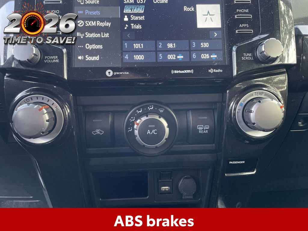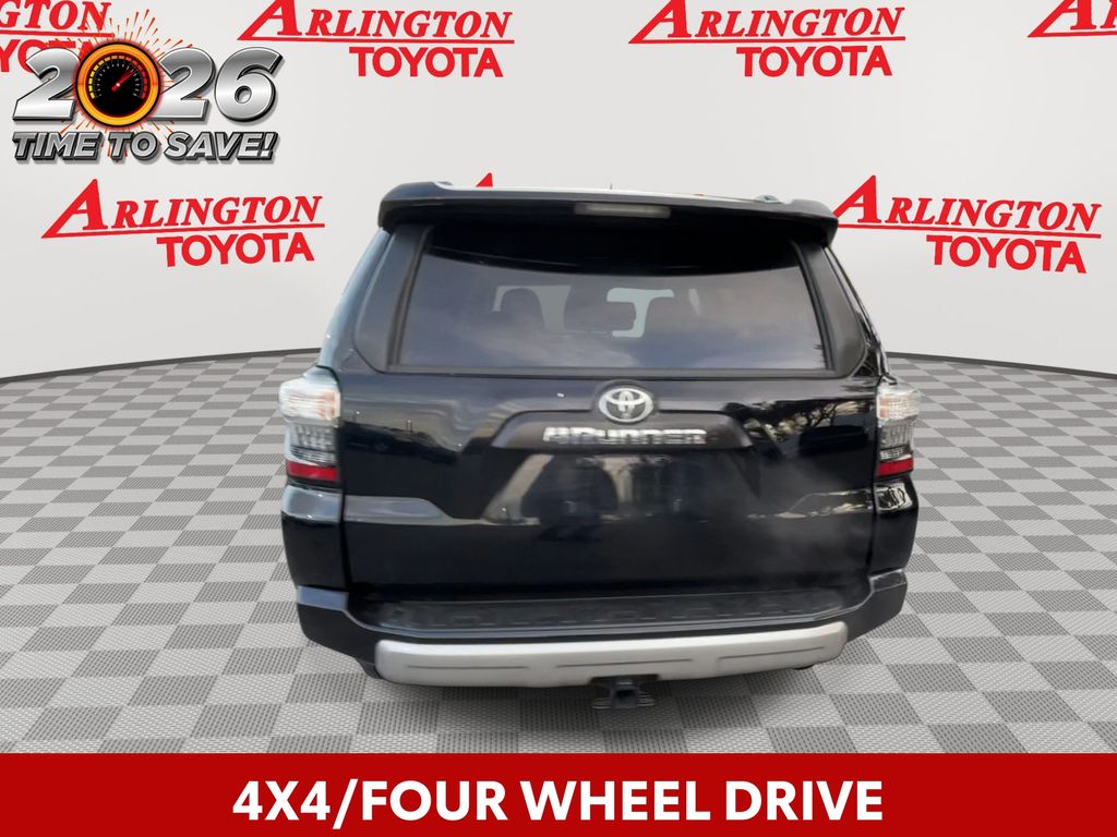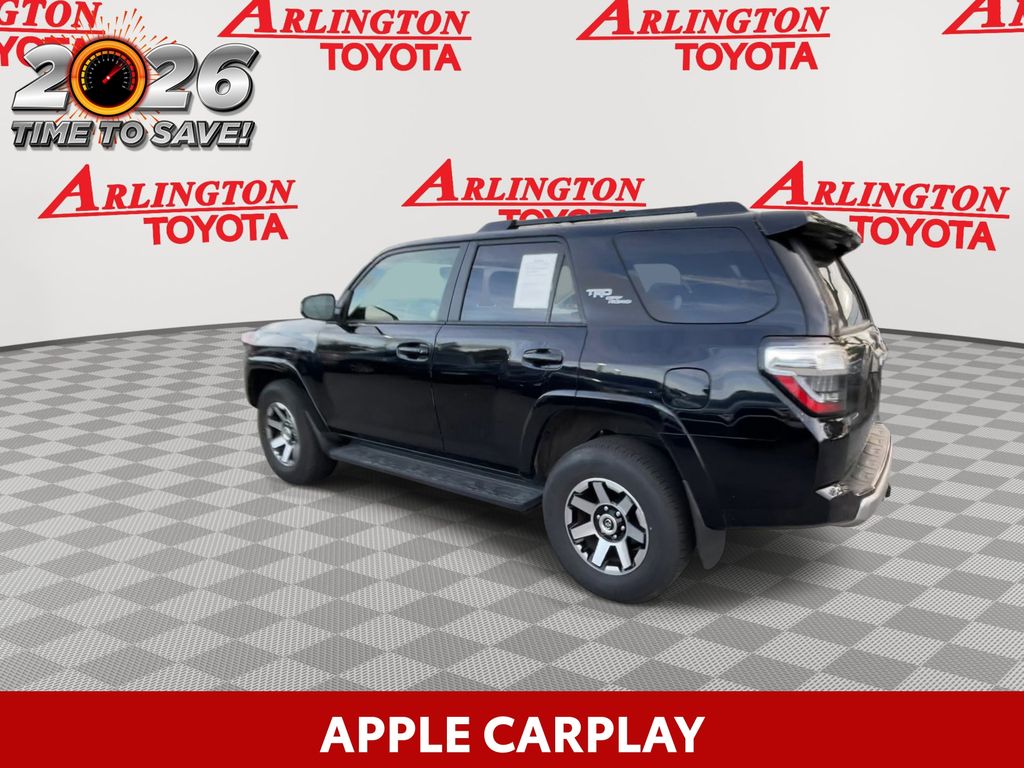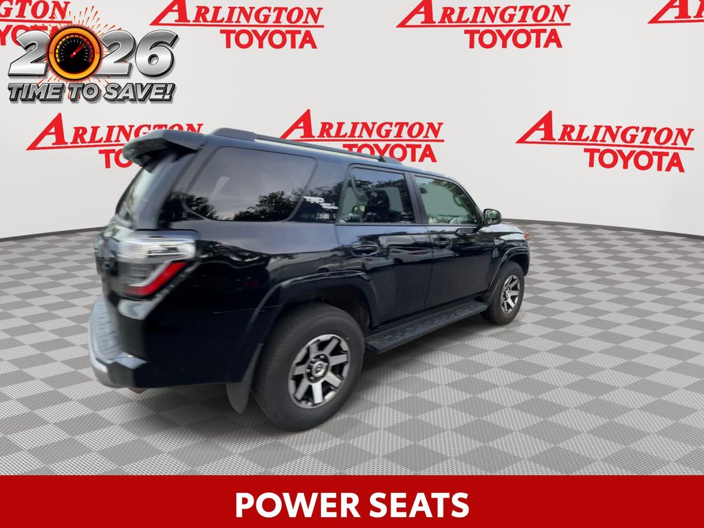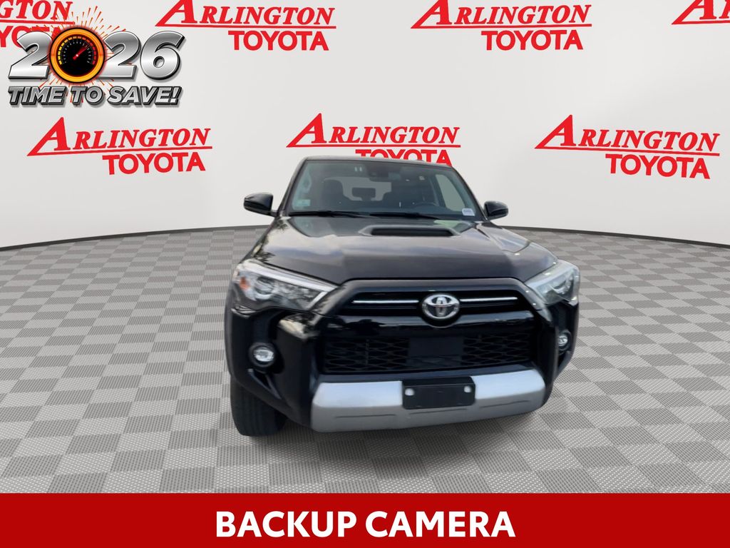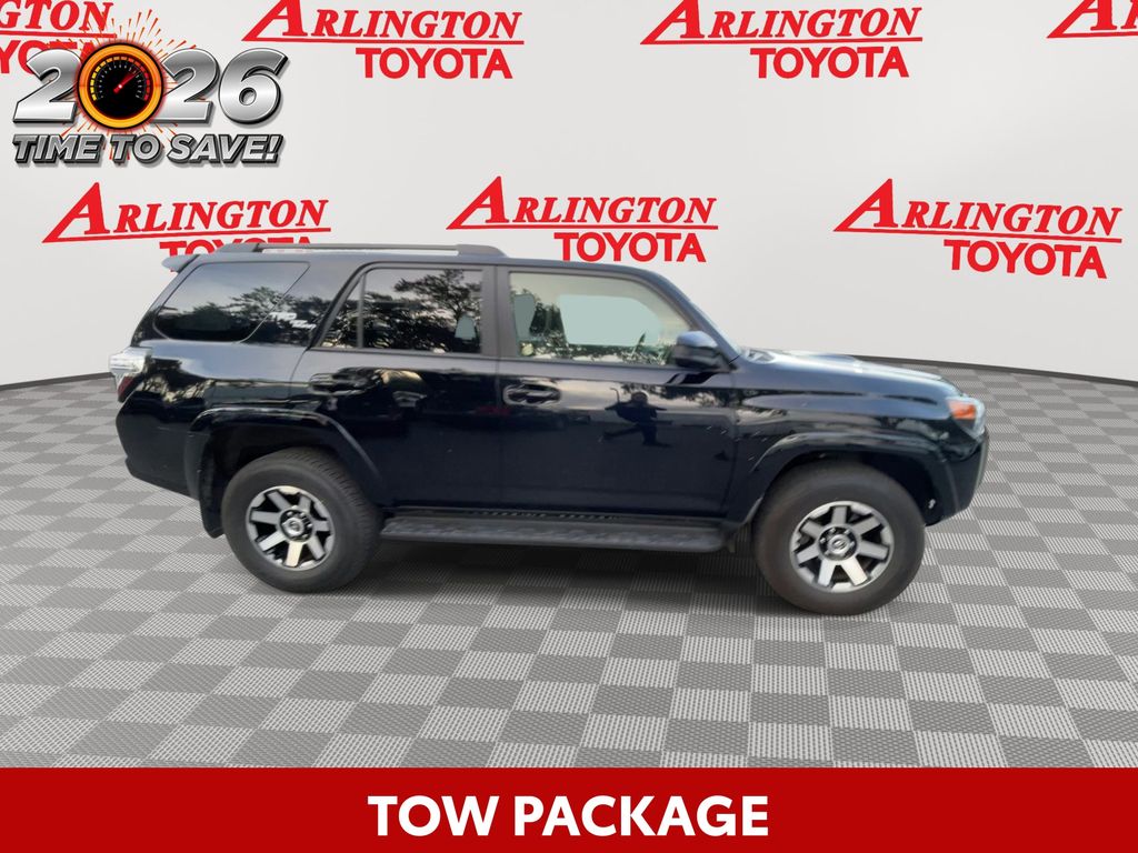 REMAINDER OF FACTORY WARRANTY STILL APPLIES, BACKUP CAMERA, BLUETOOTH HANDS FREE, ANDROID AUTO, APPLE CARPLAY, 4X4/FOUR WHEEL DRIVE, POWER SEATS, TOW PACKAGE, PUSH BUTTON START, LANE DEPARTURE, ADAPTIVE CRUISE CONTROL, NON SMOKER, 4Runner TRD Off-Road 4X4, 4D Sport Utility, 4.0L V6 DOHC 24V, 5-Speed with ECT, 4WD, Midnight Black Metallic, Graphite Cloth, ABS brakes, Black Roof Rails, Electronic Stability Control, Low tire pressure warning, Off Road Package, Remote keyless entry, Steering wheel mounted audio controls, 3.727 Axle Ratio, 4-Wheel Disc Brakes, 8 Speakers, Air Conditioning, Alloy wheels, AM/FM radio: SiriusXM, Anti-whiplash front head restraints, Apple CarPlay/Android Auto, Auto High-beam Headlights, Brake assist, Bumpers: body-color, Compass, Driver door bin, Driver vanity mirror, Dual front impact airbags, Dual front side impact airbags, Exterior Parking Camera Rear, Fabric Seat Trim, Front anti-roll bar, Front Bucket Seats, Front Center Armrest, Front fog lights, Front reading lights, Front wheel independent suspension, Heated door mirrors, Illuminated entry, Knee airbag, Leather Shift Knob, Occupant sensing airbag, Outside temperature display, Overhead airbag, Overhead console, Panic alarm, Passenger door bin, Passenger vanity mirror, Power door mirrors, Power driver seat, Power steering, Power windows, Radio: Audio Plus, Rear anti-roll bar, Rear seat center armrest, Rear window defroster, Rear window wiper, Rigid Running Boards, Security system, Speed control, Speed-sensing steering, Split folding rear seat, Spoiler, Tachometer, Telescoping steering wheel, Tilt steering wheel, Traction control, Trip computer, Variably intermittent wipers, Wheels: 17" Unique 7-Spoke Off-Road Alloy, 4Runner TRD Off-Road 4X4, 4D Sport Utility, 4.0L V6 DOHC 24V, 5-Speed with ECT, 4WD, Midnight Black Metallic, Graphite Cloth, ABS brakes, Black Roof Rails, Electronic Stability Control, Low tire pressure warning, Off Road Package, Remote keyless entry, Steering wheel mounted audio controls.