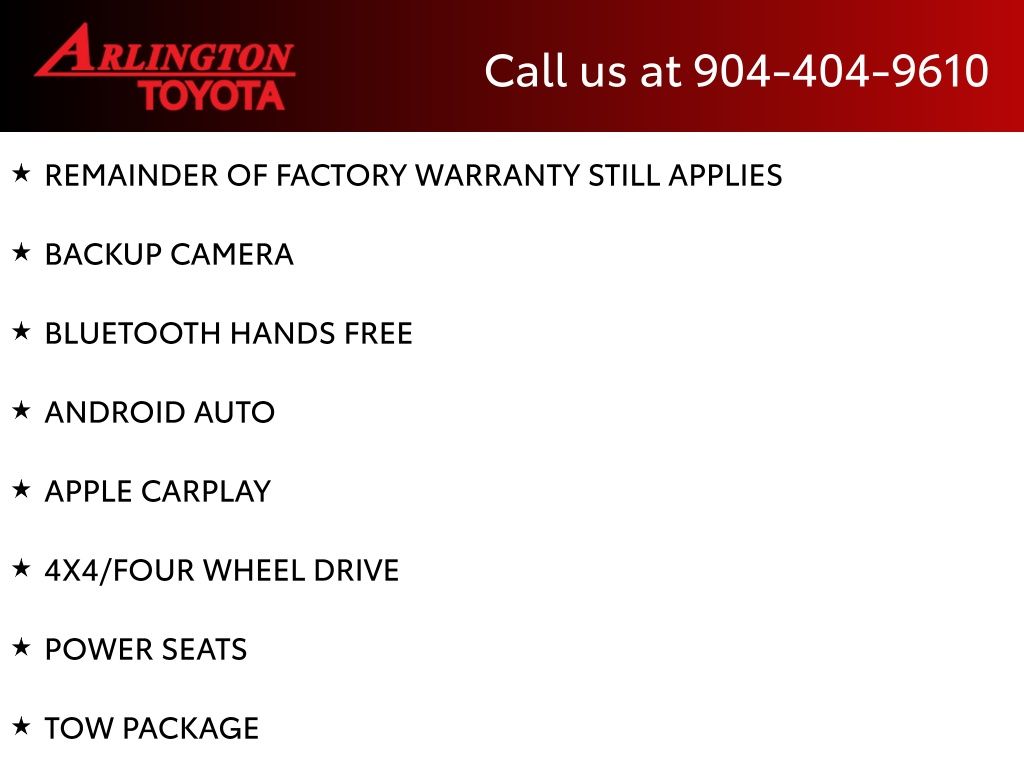 CALL FOR AVAILABILITY AND EXTRA OPTIONS ARLINGTON TOYOTA 904-721-3000.