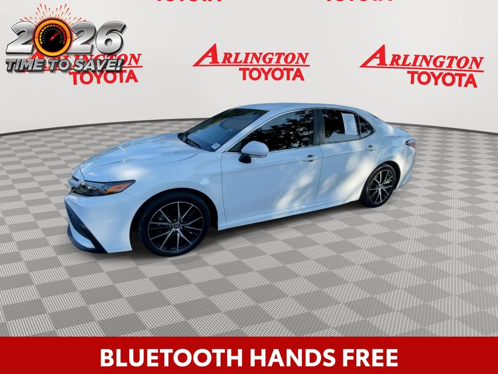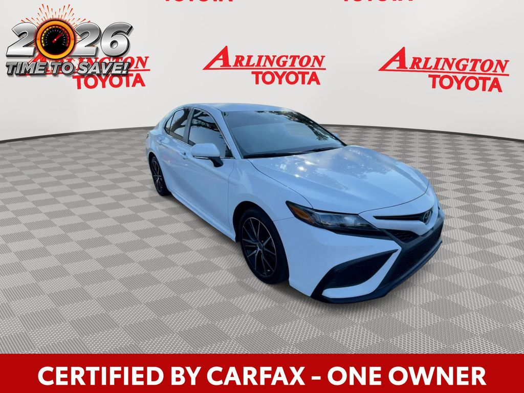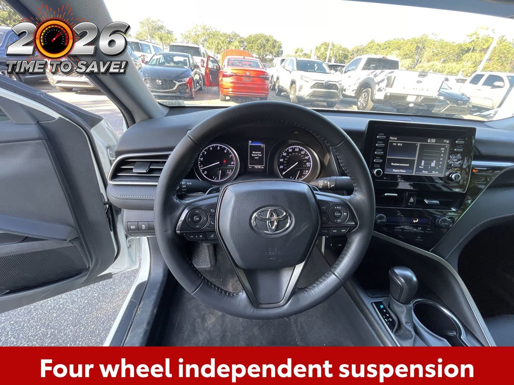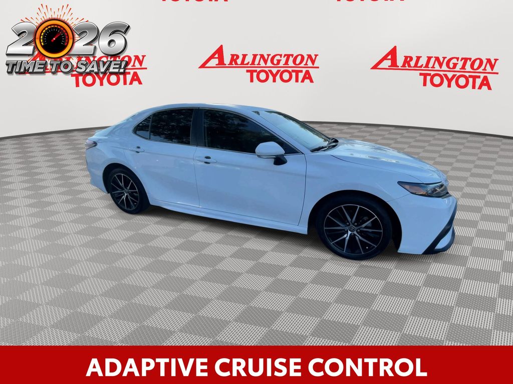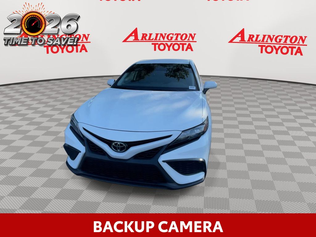 CERTIFIED BY CARFAX - ONE OWNER, BACKUP CAMERA, BLUETOOTH HANDS FREE, ANDROID AUTO, APPLE CARPLAY, POWER SEATS, LANE DEPARTURE, ADAPTIVE CRUISE CONTROL, NON SMOKER, Camry SE, 4D Sedan, 2.5L I4 DOHC 16V, 8-Speed Automatic, FWD, Ice Cap, Black w/Sport SofTex Seat Trim w/Fabric Inserts, ABS brakes, Electronic Stability Control, Four wheel independent suspension, Front dual zone A/C, Fully automatic headlights, Low tire pressure warning, Remote keyless entry, Steering wheel mounted audio controls, Turn signal indicator mirrors, 18" x 8J Alloy Wheels, 4-Wheel Disc Brakes, 6 Speakers, Air Conditioning, Alloy wheels, AM/FM radio: SiriusXM, Apple CarPlay/Android Auto, Auto High-beam Headlights, Automatic temperature control, Brake assist, Bumpers: body-color, Delay-off headlights, Driver door bin, Driver vanity mirror, Dual front impact airbags, Dual front side impact airbags, Exterior Parking Camera Rear, Front anti-roll bar, Front Bucket Seats, Front Center Armrest, Front reading lights, Heated door mirrors, Illuminated entry, Knee airbag, Leather steering wheel, Occupant sensing airbag, Outside temperature display, Overhead airbag, Overhead console, Panic alarm, Passenger door bin, Passenger vanity mirror, Power door mirrors, Power driver seat, Power steering, Power windows, Radio data system, Radio: Audio, Rear anti-roll bar, Rear seat center armrest, Rear side impact airbag, Rear window defroster, Security system, Speed control, Speed-sensing steering, Split folding rear seat, Spoiler, Sport SofTex Seat Trim w/Fabric Inserts, Tachometer, Telescoping steering wheel, Tilt steering wheel, Traction control, Trip computer, Variably intermittent wipers, Camry SE, 4D Sedan, 2.5L I4 DOHC 16V, 8-Speed Automatic, FWD, Ice Cap, Black w/Sport SofTex Seat Trim w/Fabric Inserts, ABS brakes, Electronic Stability Control, Four wheel independent suspension, Front dual zone A/C, Fully automatic headlights, Low tire pressure warning, Remote keyless entry, Steering wheel mounted audio controls, Turn signal indicator mirrors.