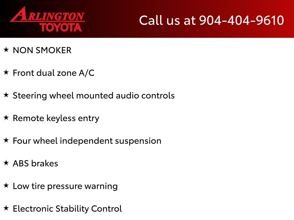 CALL FOR AVAILABILITY AND EXTRA OPTIONS ARLINGTON TOYOTA 904-721-3000.