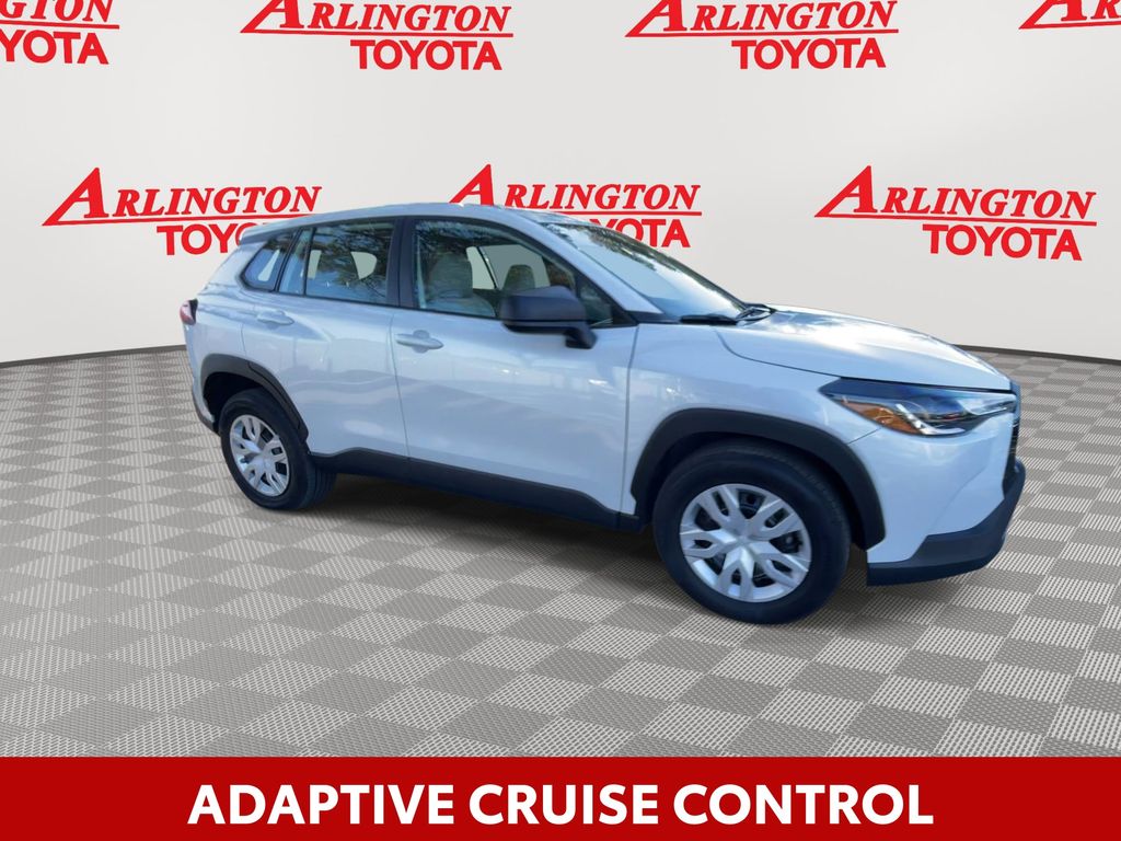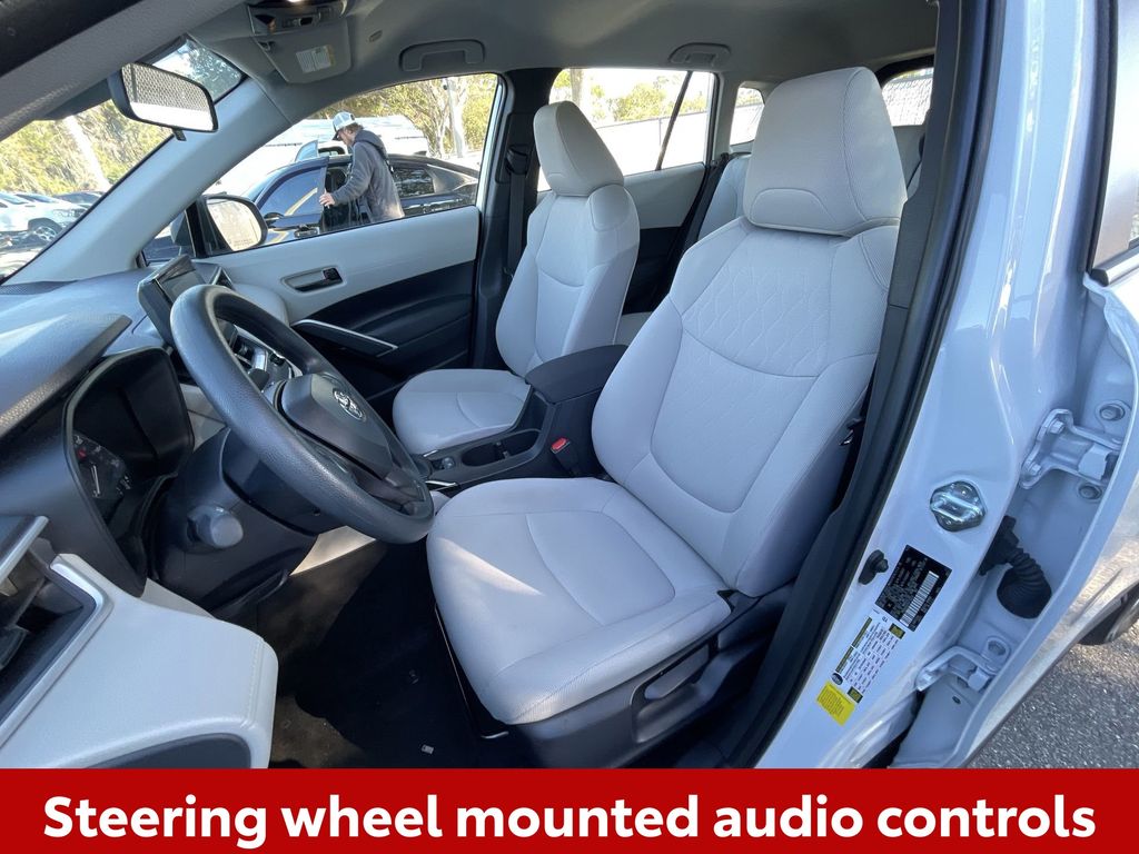 CERTIFIED BY CARFAX - ONE OWNER, REMAINDER OF FACTORY WARRANTY STILL APPLIES, BACKUP CAMERA, BLUETOOTH HANDS FREE, ANDROID AUTO, APPLE CARPLAY, LANE DEPARTURE, ADAPTIVE CRUISE CONTROL, NON SMOKER, Corolla Cross L, 4D Sport Utility, 2.0L I4 PDI DOHC 16V LEV3-SULEV30 169hp, CVT, FWD, Wind Chill Pearl, Light Gray Cloth, ABS brakes, Electronic Stability Control, Low tire pressure warning, Steering wheel mounted audio controls, 4-Wheel Disc Brakes, 4.014 Axle Ratio, 6 Speakers, Air Conditioning, AM/FM radio: SiriusXM, Auto High-beam Headlights, Brake assist, Bumpers: body-color, Delay-off headlights, Driver door bin, Driver vanity mirror, Dual front impact airbags, Dual front side impact airbags, Exterior Parking Camera Rear, Fabric Seat Trim, Front anti-roll bar, Front Bucket Seats, Front Center Armrest, Front reading lights, Front wheel independent suspension, Heated door mirrors, Illuminated entry, Knee airbag, Occupant sensing airbag, Outside temperature display, Overhead airbag, Panic alarm, Passenger door bin, Passenger vanity mirror, Power door mirrors, Power steering, Power windows, Radio data system, Radio: 8" Touch-Screen Display Audio, Rear anti-roll bar, Rear side impact airbag, Rear window defroster, Remote keyless entry, Speed control, Split folding rear seat, Spoiler, Tachometer, Telescoping steering wheel, Tilt steering wheel, Traction control, Trip computer, Wheels: 17" Steel w/Silver Wheel Covers, Corolla Cross L, 4D Sport Utility, 2.0L I4 PDI DOHC 16V LEV3-SULEV30 169hp, CVT, FWD, Wind Chill Pearl, Light Gray Cloth, ABS brakes, Electronic Stability Control, Low tire pressure warning, Steering wheel mounted audio controls.