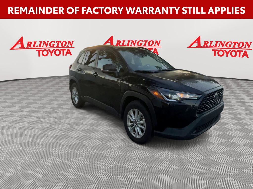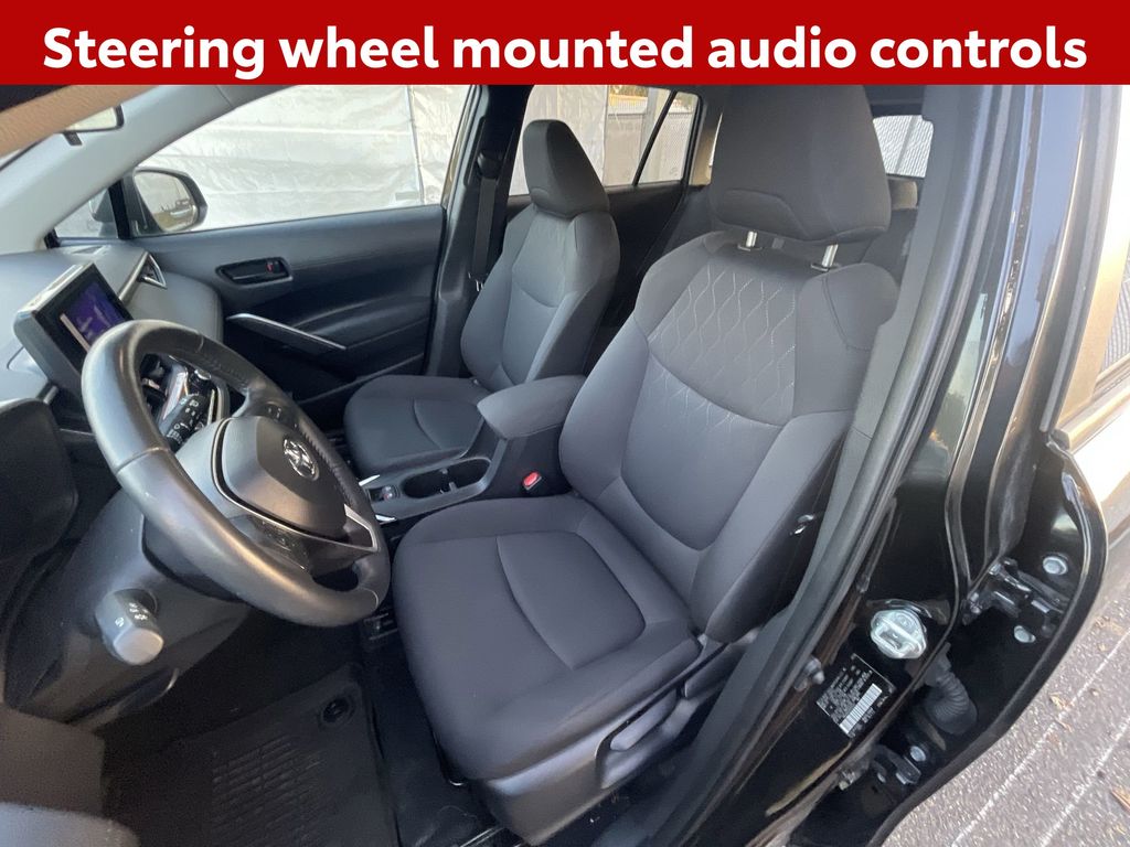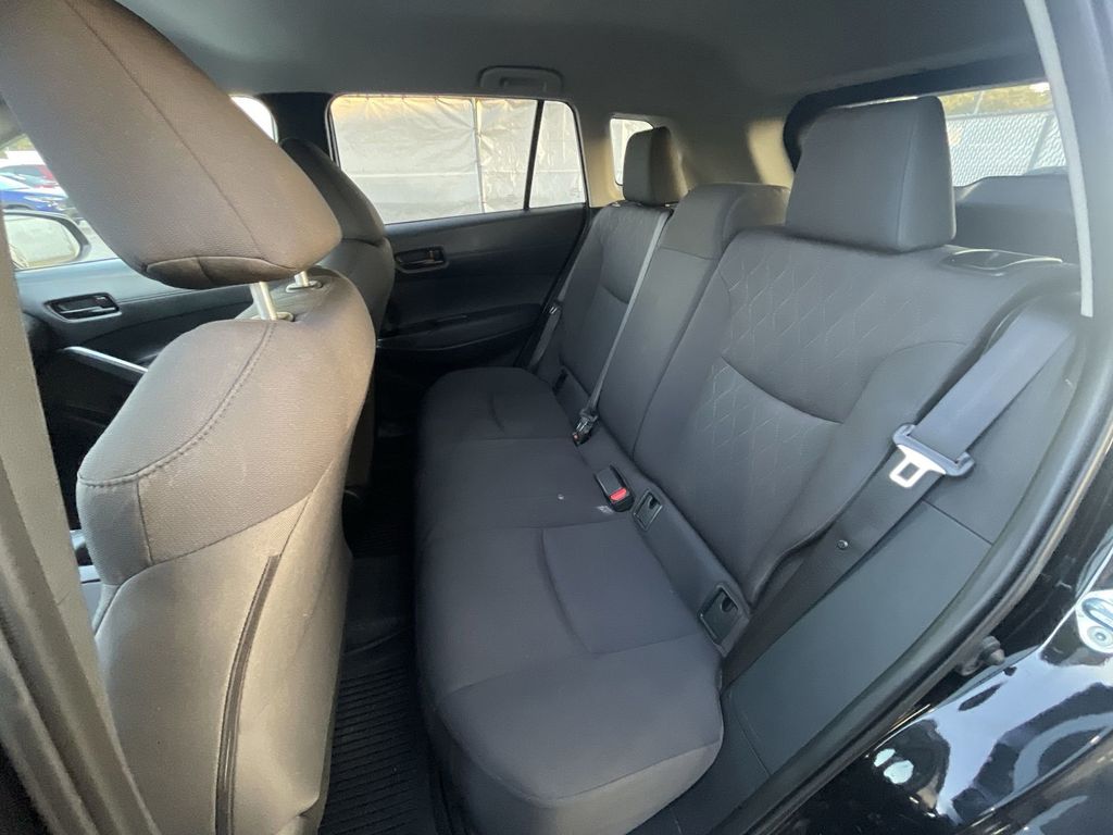 REMAINDER OF FACTORY WARRANTY STILL APPLIES, BACKUP CAMERA, BLUETOOTH HANDS FREE, ANDROID AUTO, APPLE CARPLAY, PUSH BUTTON START, LANE DEPARTURE, ADAPTIVE CRUISE CONTROL, NON SMOKER, Corolla Cross LE, 4D Sport Utility, 2.0L I4 PDI DOHC 16V LEV3-SULEV30 169hp, CVT, FWD, Jet Black, Black w/Fabric Seat Trim, ABS brakes, Electronic Stability Control, Fully automatic headlights, Low tire pressure warning, Steering wheel mounted audio controls, Turn signal indicator mirrors, 17" Silver Alloy Wheels, 4-Wheel Disc Brakes, 4.014 Axle Ratio, 6 Speakers, Air Conditioning, Alloy wheels, AM/FM radio: SiriusXM, Auto High-beam Headlights, Automatic temperature control, Brake assist, Bumpers: body-color, Delay-off headlights, Driver door bin, Driver vanity mirror, Dual front impact airbags, Dual front side impact airbags, Exterior Parking Camera Rear, Fabric Seat Trim, Front anti-roll bar, Front Bucket Seats, Front Center Armrest, Front reading lights, Front wheel independent suspension, Heated door mirrors, Illuminated entry, Knee airbag, Leather steering wheel, Occupant sensing airbag, Outside temperature display, Overhead airbag, Panic alarm, Passenger door bin, Passenger vanity mirror, Power door mirrors, Power steering, Power windows, Radio data system, Radio: 8" Touch-Screen Display Audio, Rear anti-roll bar, Rear side impact airbag, Rear window defroster, Rear window wiper, Remote keyless entry, Speed control, Split folding rear seat, Spoiler, Tachometer, Telescoping steering wheel, Tilt steering wheel, Traction control, Trip computer, Variably intermittent wipers, Corolla Cross LE, 4D Sport Utility, 2.0L I4 PDI DOHC 16V LEV3-SULEV30 169hp, CVT, FWD, Jet Black, Black w/Fabric Seat Trim, ABS brakes, Electronic Stability Control, Fully automatic headlights, Low tire pressure warning, Steering wheel mounted audio controls, Turn signal indicator mirrors.