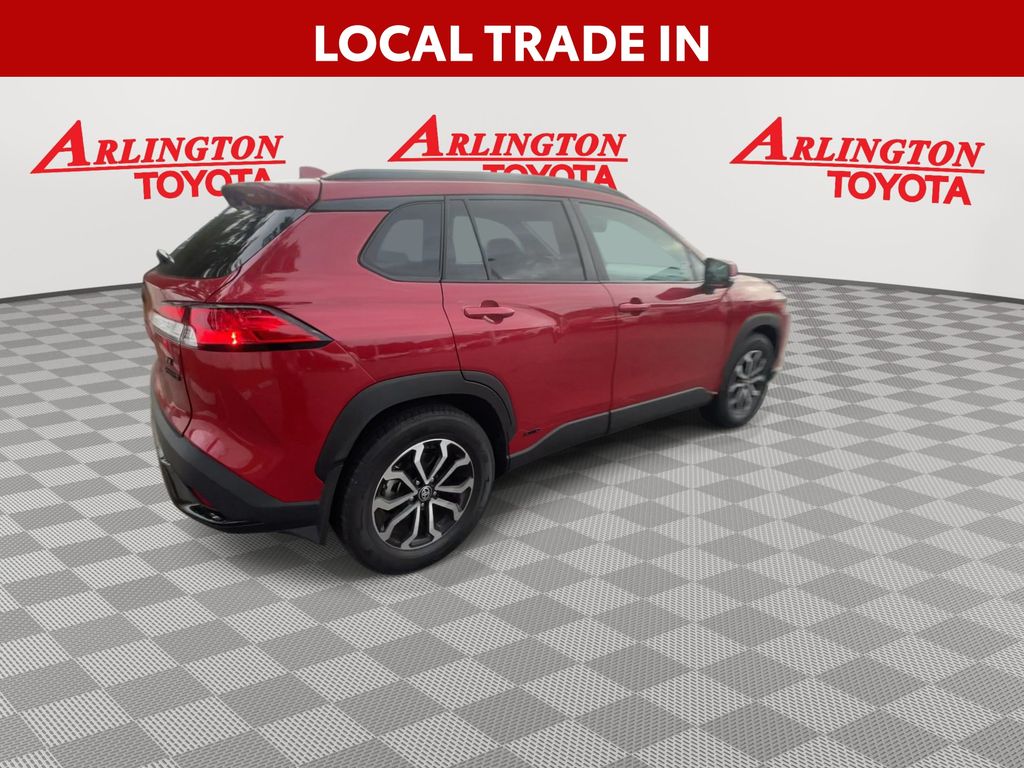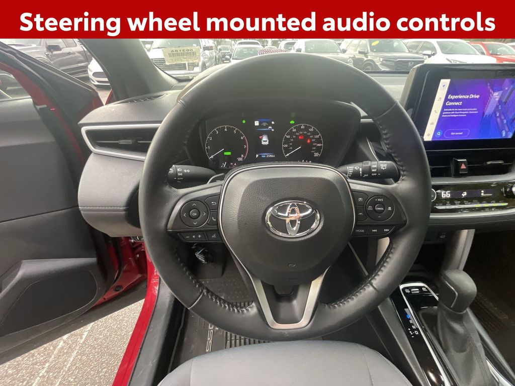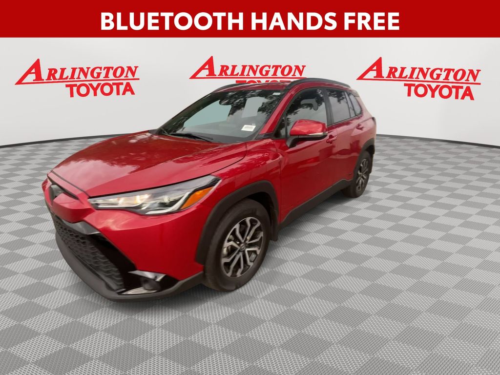 REMAINDER OF FACTORY WARRANTY STILL APPLIES, BACKUP CAMERA, BLUETOOTH HANDS FREE, ANDROID AUTO, APPLE CARPLAY, AWD/ALLWHEEL DRIVE, LOCAL TRADE IN, LOW MILES, PUSH BUTTON START, LANE DEPARTURE, ADAPTIVE CRUISE CONTROL, NON SMOKER, Corolla Cross Hybrid SE AWD, 4D Sport Utility, 2.0L I4 PDI Hybrid DOHC 16V LEV3-SULEV30 150hp, eCVT, AWD, Barcelona Red Metallic, Black w/Fabric Seat Trim, ABS brakes, Electronic Stability Control, Low tire pressure warning, Steering wheel mounted audio controls, 4-Wheel Disc Brakes, 6 Speakers, Air Conditioning, Alloy wheels, AM/FM radio: SiriusXM, Auto High-beam Headlights, Automatic temperature control, Brake assist, Bumpers: body-color, Delay-off headlights, Driver door bin, Driver vanity mirror, Dual front impact airbags, Dual front side impact airbags, Exterior Parking Camera Rear, Four wheel independent suspension, Front anti-roll bar, Front Bucket Seats, Front Center Armrest, Front reading lights, Heated door mirrors, Illuminated entry, Knee airbag, Mudguards (TMS), Occupant sensing airbag, Outside temperature display, Overhead airbag, Panic alarm, Passenger door bin, Passenger vanity mirror, Power door mirrors, Power steering, Power windows, Radio data system, Radio: 8" Touch-Screen Display Audio, Rear anti-roll bar, Rear side impact airbag, Rear window defroster, Remote keyless entry, Speed control, Split folding rear seat, Spoiler, Tachometer, TBD Axle Ratio, Telescoping steering wheel, Tilt steering wheel, Traction control, Trip computer, Variably intermittent wipers, Corolla Cross Hybrid SE AWD, 4D Sport Utility, 2.0L I4 PDI Hybrid DOHC 16V LEV3-SULEV30 150hp, eCVT, AWD, Barcelona Red Metallic, Black w/Fabric Seat Trim, ABS brakes, Electronic Stability Control, Low tire pressure warning, Steering wheel mounted audio controls.