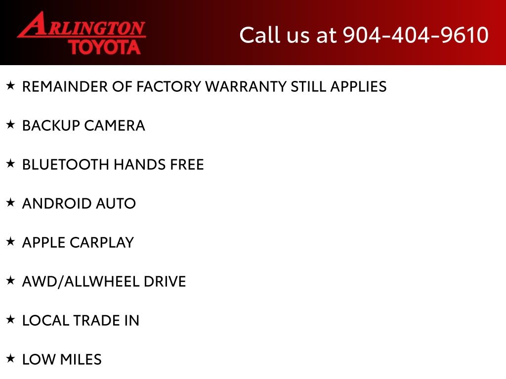 CALL FOR AVAILABILITY AND EXTRA OPTIONS ARLINGTON TOYOTA 904-721-3000.