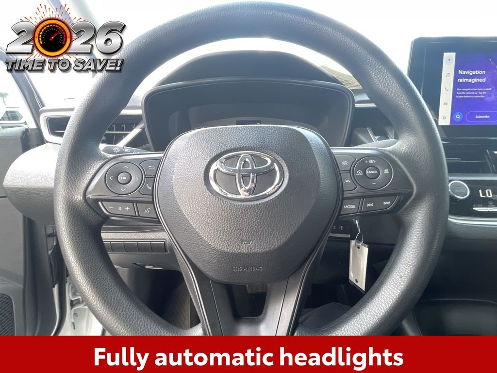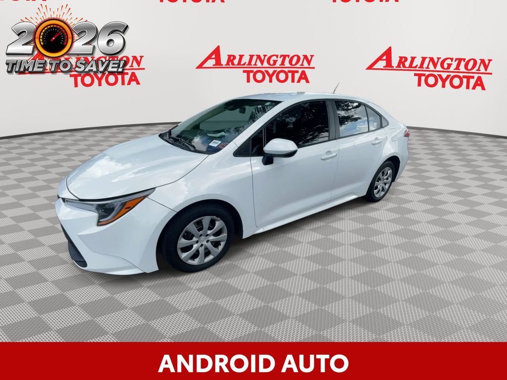 BACKUP CAMERA, BLUETOOTH HANDS FREE, ANDROID AUTO, APPLE CARPLAY, LANE DEPARTURE, ADAPTIVE CRUISE CONTROL, NON SMOKER, Corolla LE, 4D Sedan, 2.0L I4 DOHC 16V, CVT, FWD, Ice Cap, Black Cloth, ABS brakes, Electronic Stability Control, Fully automatic headlights, Low tire pressure warning, Steering wheel mounted audio controls, 16" Steel Wheels w/Covers, 4-Wheel Disc Brakes, 6 Speakers, Air Conditioning, AM/FM radio: SiriusXM, Auto High-beam Headlights, Automatic temperature control, Brake assist, Bumpers: body-color, Delay-off headlights, Driver door bin, Driver vanity mirror, Dual front impact airbags, Dual front side impact airbags, Exterior Parking Camera Rear, Fabric Seat Trim, Front anti-roll bar, Front Bucket Seats, Front Center Armrest, Front reading lights, Front wheel independent suspension, Illuminated entry, Knee airbag, Occupant sensing airbag, Outside temperature display, Overhead airbag, Panic alarm, Passenger door bin, Passenger vanity mirror, Power door mirrors, Power steering, Power windows, Radio data system, Radio: 8" Toyota Audio Multimedia, Rear anti-roll bar, Rear seat center armrest, Rear side impact airbag, Rear window defroster, Remote keyless entry, Speed control, Split folding rear seat, Tachometer, Telescoping steering wheel, Tilt steering wheel, Traction control, Trip computer, Corolla LE, 4D Sedan, 2.0L I4 DOHC 16V, CVT, FWD, Ice Cap, Black Cloth, ABS brakes, Electronic Stability Control, Fully automatic headlights, Low tire pressure warning, Steering wheel mounted audio controls.