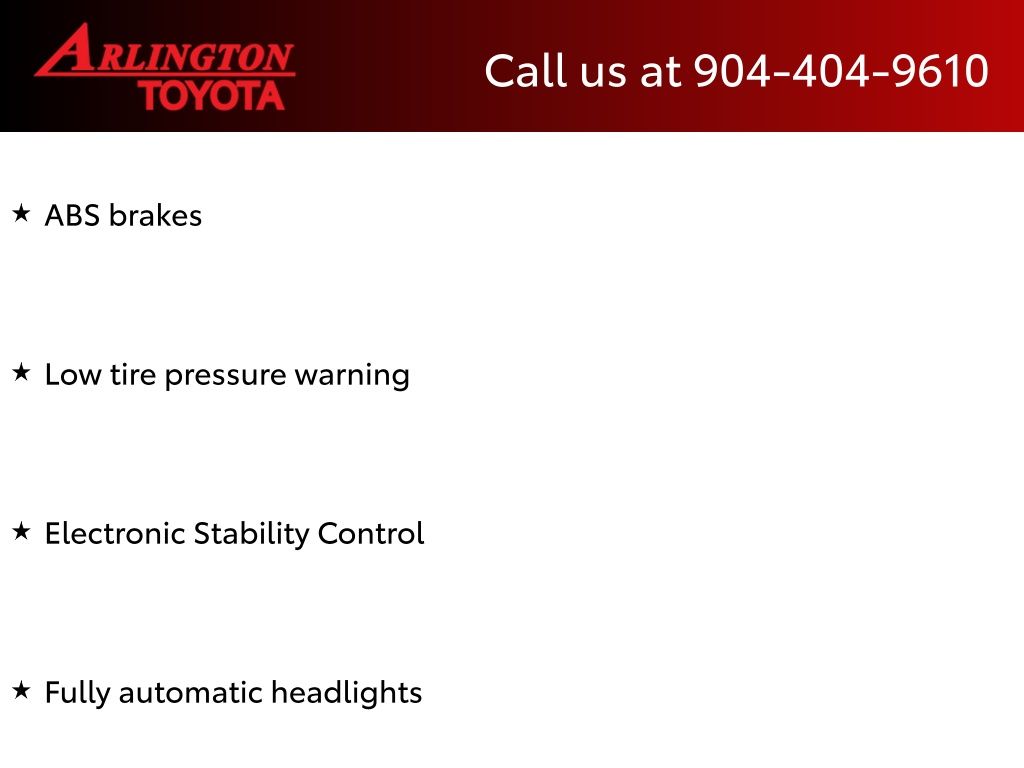 CALL FOR AVAILABILITY AND EXTRA OPTIONS ARLINGTON TOYOTA 904-721-3000.