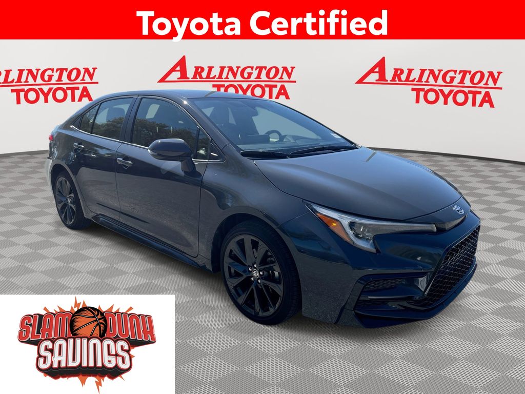 CERTIFIED BY CARFAX - ONE OWNER, REMAINDER OF FACTORY WARRANTY STILL APPLIES, BACKUP CAMERA, BLUETOOTH HANDS FREE, ANDROID AUTO, APPLE CARPLAY, LANE DEPARTURE, ADAPTIVE CRUISE CONTROL, NON SMOKER, Corolla SE, 4D Sedan, 2.0L I4 DOHC 16V, CVT, FWD, Underground, Black/Red Cloth, ABS brakes, Electronic Stability Control, Low tire pressure warning, Steering wheel mounted audio controls, Turn signal indicator mirrors, 4-Wheel Disc Brakes, 6 Speakers, Air Conditioning, Alloy wheels, AM/FM radio: SiriusXM, Auto High-beam Headlights, Automatic temperature control, Brake assist, Bumpers: body-color, Delay-off headlights, Driver door bin, Driver vanity mirror, Dual front impact airbags, Dual front side impact airbags, Exterior Parking Camera Rear, Fabric Seat Trim, Four wheel independent suspension, Front anti-roll bar, Front Bucket Seats, Front Center Armrest, Front reading lights, Front Sport Seats, Fully automatic headlights, Heated door mirrors, Illuminated entry, Knee airbag, Leather steering wheel, Occupant sensing airbag, Outside temperature display, Overhead airbag, Panic alarm, Passenger door bin, Passenger vanity mirror, Power door mirrors, Power steering, Power windows, Radio data system, Radio: 8" Toyota Audio Multimedia, Rear anti-roll bar, Rear seat center armrest, Rear side impact airbag, Rear window defroster, Remote keyless entry, Speed control, Split folding rear seat, Spoiler, Tachometer, Telescoping steering wheel, Tilt steering wheel, Traction control, Trip computer, Variably intermittent wipers, Wheels: 18" Alloy w/Graphite-Colored Finish, Corolla SE, 4D Sedan, 2.0L I4 DOHC 16V, CVT, FWD, Underground, Black/Red Cloth, ABS brakes, Electronic Stability Control, Low tire pressure warning, Steering wheel mounted audio controls, Turn signal indicator mirrors.