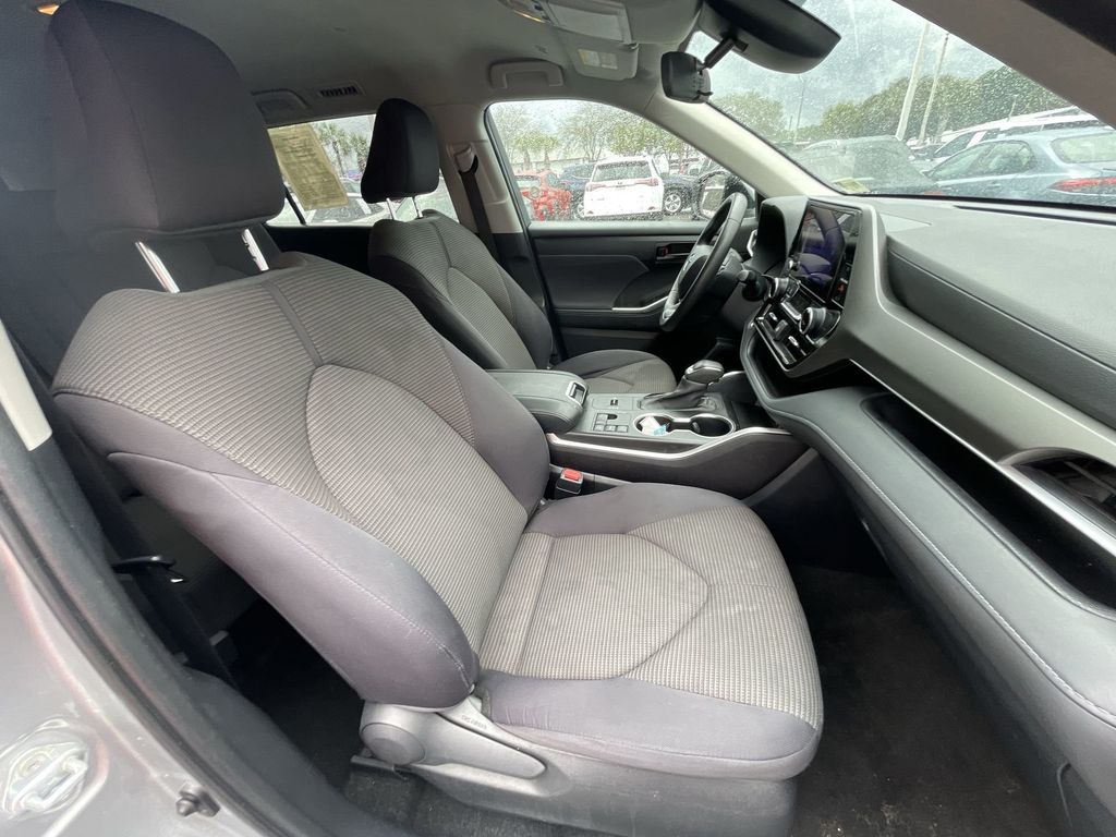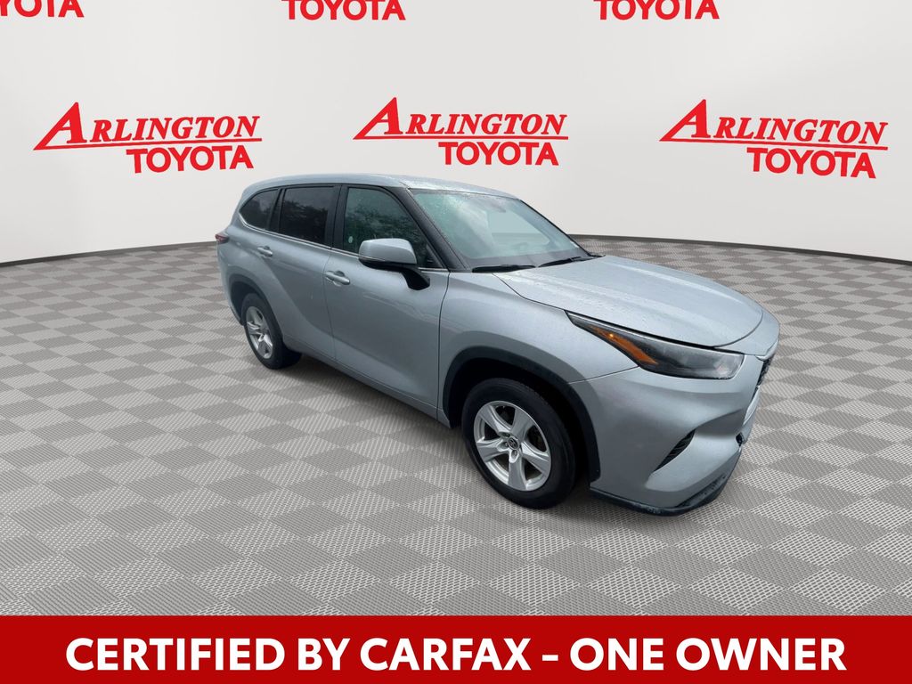 CERTIFIED BY CARFAX - ONE OWNER, REMAINDER OF FACTORY WARRANTY STILL APPLIES, BACKUP CAMERA, BLUETOOTH HANDS FREE, ANDROID AUTO, APPLE CARPLAY, POWER SEATS, PUSH BUTTON START, LANE DEPARTURE, ADAPTIVE CRUISE CONTROL, NON SMOKER, Highlander LE, 4D Sport Utility, 2.4L I4 PDI Turbocharged DOHC 16V LEV3-SULEV30 265hp, 8-Speed Automatic, FWD, Celestial Silver, Black Cloth, ABS brakes, Electronic Stability Control, Four wheel independent suspension, Front dual zone A/C, Fully automatic headlights, Low tire pressure warning, Steering wheel mounted audio controls, Turn signal indicator mirrors, 18" Painted Alloy Wheels, 3.329 Axle Ratio, 3rd row seats: split-bench, 4-Wheel Disc Brakes, 6 Speakers, Air Conditioning, Alloy wheels, AM/FM radio: SiriusXM, Apple CarPlay/Android Auto, Auto High-beam Headlights, Automatic temperature control, Brake assist, Bumpers: body-color, Delay-off headlights, Driver door bin, Driver vanity mirror, Dual front impact airbags, Dual front side impact airbags, Exterior Parking Camera Rear, Fabric Seat Trim, Front anti-roll bar, Front Bucket Seats, Front Center Armrest, Front fog lights, Front reading lights, Heated door mirrors, Illuminated entry, Knee airbag, Leather Shift Knob, Leather steering wheel, Occupant sensing airbag, Outside temperature display, Overhead airbag, Overhead console, Panic alarm, Passenger door bin, Passenger vanity mirror, Power door mirrors, Power driver seat, Power Liftgate, Power steering, Power windows, Radio: 8" Toyota Audio Multimedia, Rear air conditioning, Rear anti-roll bar, Rear reading lights, Rear seat center armrest, Rear window defroster, Rear window wiper, Reclining 3rd row seat, Remote keyless entry, Security system, Speed control, Speed-sensing steering, Split folding rear seat, Spoiler, Tachometer, Telescoping steering wheel, Tilt steering wheel, Traction control, Trip computer, Variably intermittent wipers, Highlander LE, 4D Sport Utility, 2.4L I4 PDI Turbocharged DOHC 16V LEV3-SULEV30 265hp, 8-Speed Automatic, FWD, Celestial Silver, Black Cloth, ABS brakes, Electronic Stability Control, Four wheel independent suspension, Front dual zone A/C, Fully automatic headlights, Low tire pressure warning, Steering wheel mounted audio controls, Turn signal indicator mirrors.
