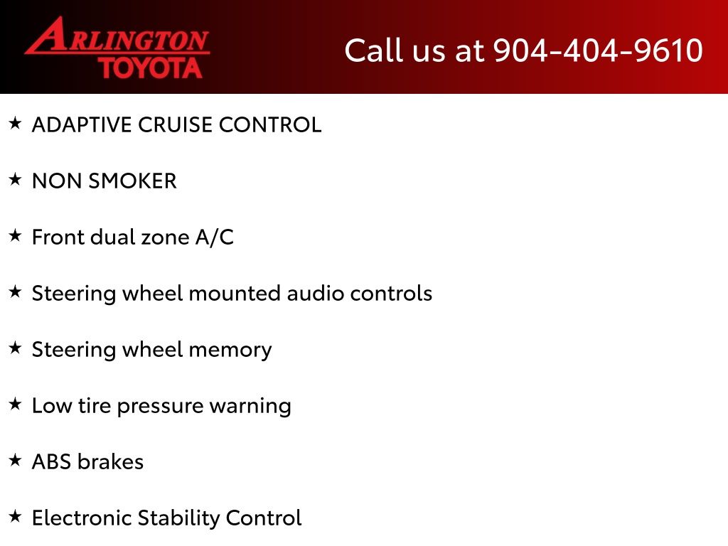 CALL FOR AVAILABILITY AND EXTRA OPTIONS ARLINGTON TOYOTA 904-721-3000.