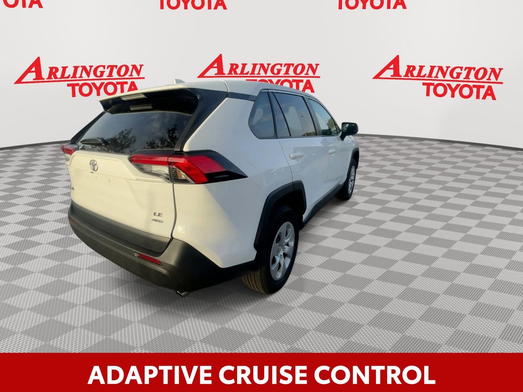 REMAINDER OF FACTORY WARRANTY STILL APPLIES, BACKUP CAMERA, BLUETOOTH HANDS FREE, ANDROID AUTO, APPLE CARPLAY, LANE DEPARTURE, ADAPTIVE CRUISE CONTROL, NON SMOKER, RAV4 LE AWD, 4D Sport Utility, 2.5L 4-Cylinder DOHC Dual VVT-i, 8-Speed Automatic, AWD, Ice Cap, Black Cloth, ABS brakes, Electronic Stability Control, Four wheel independent suspension, Low tire pressure warning, Remote keyless entry, Steering wheel mounted audio controls, 17" Steel Wheels, 4-Wheel Disc Brakes, 6 Speakers, Air Conditioning, AM/FM radio: SiriusXM, Auto High-beam Headlights, Axle Ratio: 3.177, Brake assist, Bumpers: body-color, Driver door bin, Driver vanity mirror, Dual front impact airbags, Dual front side impact airbags, Exterior Parking Camera Rear, Fabric Seat Trim, Front anti-roll bar, Front Bucket Seats, Front Center Armrest, Front reading lights, Illuminated entry, Knee airbag, Occupant sensing airbag, Outside temperature display, Overhead airbag, Overhead console, Panic alarm, Passenger door bin, Passenger vanity mirror, Power door mirrors, Power steering, Power windows, Radio data system, Radio: AM/FM/XM Audio System, Rear anti-roll bar, Rear seat center armrest, Rear window defroster, Rear window wiper, Speed control, Speed-sensing steering, Split folding rear seat, Spoiler, Tachometer, Telescoping steering wheel, Tilt steering wheel, Traction control, Trip computer, RAV4 LE AWD, 4D Sport Utility, 2.5L 4-Cylinder DOHC Dual VVT-i, 8-Speed Automatic, AWD, Ice Cap, Black Cloth, ABS brakes, Electronic Stability Control, Four wheel independent suspension, Low tire pressure warning, Remote keyless entry, Steering wheel mounted audio controls.