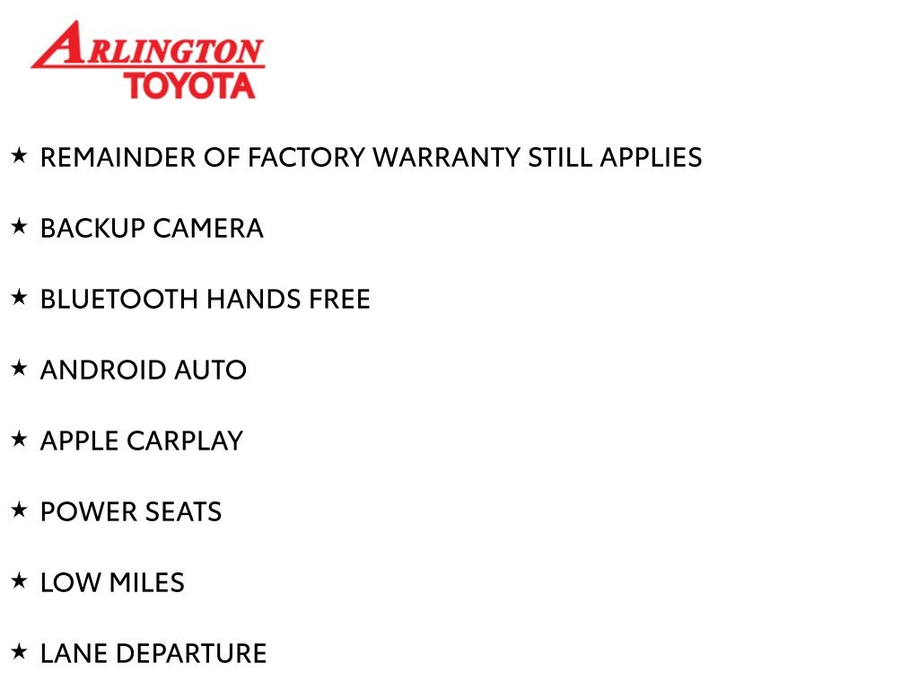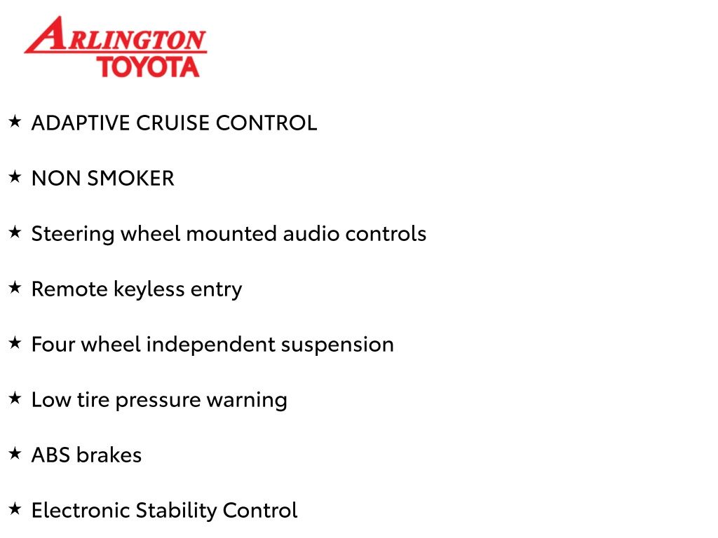Prices do not include tax, tag, title, a pre-delivery service fee* of $894.00, an electronic registration filing fee* of $199.00 (*these charges represent costs and profits to the dealer for items such as inspecting, cleaning, and preparing documents related to the sale), and an Arlington Toyota Total Value Package of $1,889.00 (*these charges represent costs and profits to the dealer for items such as inspecting, cleaning, and preparing documents related to the sale). The final price is also subject to repair order reconditioning costs. Any price does not include dealer-installed accessories. All offers are mutually exclusive. All vehicles are subject to prior sale. See dealer for complete details.
