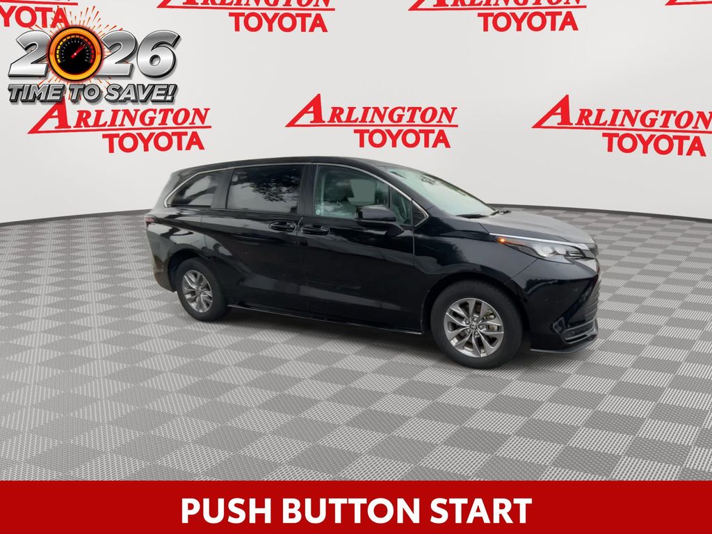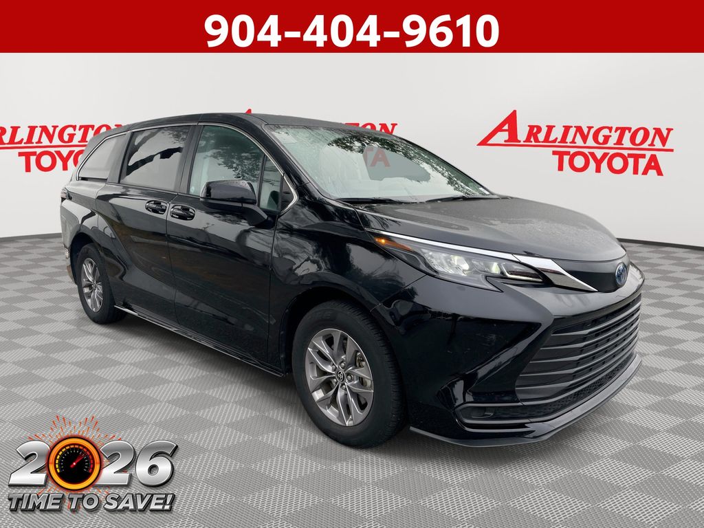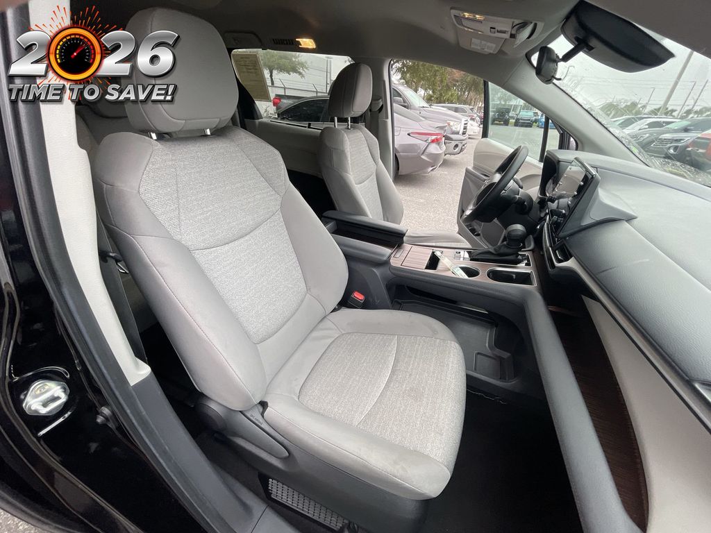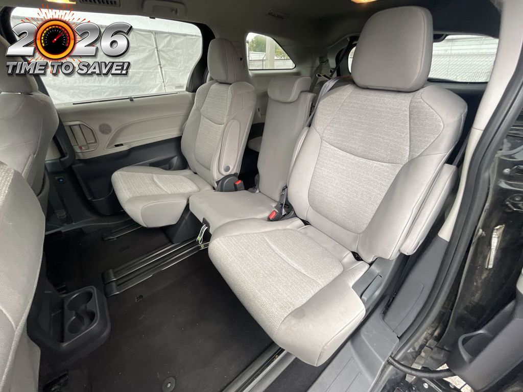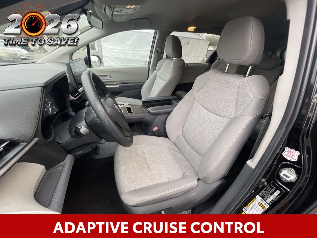 REMAINDER OF FACTORY WARRANTY STILL APPLIES, BACKUP CAMERA, BLUETOOTH HANDS FREE, ANDROID AUTO, APPLE CARPLAY, POWER SEATS, THIRD ROW SEATING, PUSH BUTTON START, LANE DEPARTURE, ADAPTIVE CRUISE CONTROL, NON SMOKER, Sienna LE 8 Passenger, 4D Passenger Van, 2.5L I4, CVT, FWD, Midnight Black Metallic, Graphite Cloth, ABS brakes, Four wheel independent suspension, Front dual zone A/C, Low tire pressure warning, Remote keyless entry, Steering wheel mounted audio controls, Turn signal indicator mirrors, 17" Alloy Wheels, 3rd row seats: split-bench, 4-Wheel Disc Brakes, 6 Speakers, Air Conditioning, Alloy wheels, AM/FM radio: SiriusXM, Apple CarPlay/Android Auto, Auto High-beam Headlights, Auto-dimming door mirrors, Automatic temperature control, Axle Ratio: TBA, Brake assist, Bumpers: body-color, Compass, Delay-off headlights, Door auto-latch, Driver door bin, Driver vanity mirror, Driver's Seat Mounted Armrest, Dual front impact airbags, Dual front side impact airbags, Electronic Stability Control, Exterior Parking Camera Rear, Fabric Seat Material, Front anti-roll bar, Front Bucket Seats, Front reading lights, Fully automatic headlights, Heated door mirrors, Illuminated entry, Knee airbag, Lane Departure Warning System, Occupant sensing airbag, Outside temperature display, Overhead airbag, Overhead console, Panic alarm, Passenger door bin, Passenger seat mounted armrest, Passenger vanity mirror, Power door mirrors, Power driver seat, Power steering, Power windows, Radio data system, Radio: Audio System, Rear air conditioning, Rear anti-roll bar, Rear reading lights, Rear seat center armrest, Rear side impact airbag, Rear window defroster, Rear window wiper, Reclining 3rd row seat, Speed control, Speed-sensing steering, Split folding rear seat, Spoiler, Tachometer, Telescoping steering wheel, Tilt steering wheel, Traction control, Trip computer, Variably intermittent wipers, Sienna LE 8 Passenger, 4D Passenger Van, 2.5L I4, CVT, FWD, Midnight Black Metallic, Graphite Cloth, ABS brakes, Four wheel independent suspension, Front dual zone A/C, Low tire pressure warning, Remote keyless entry, Steering wheel mounted audio controls, Turn signal indicator mirrors.