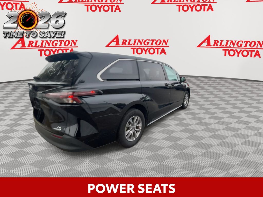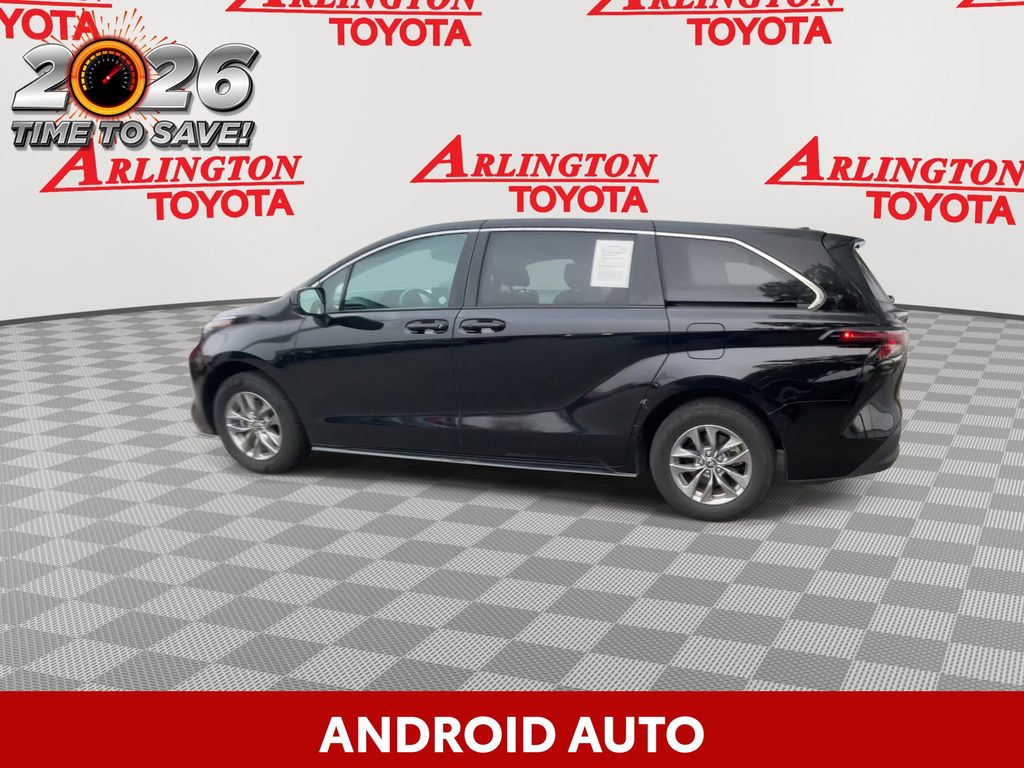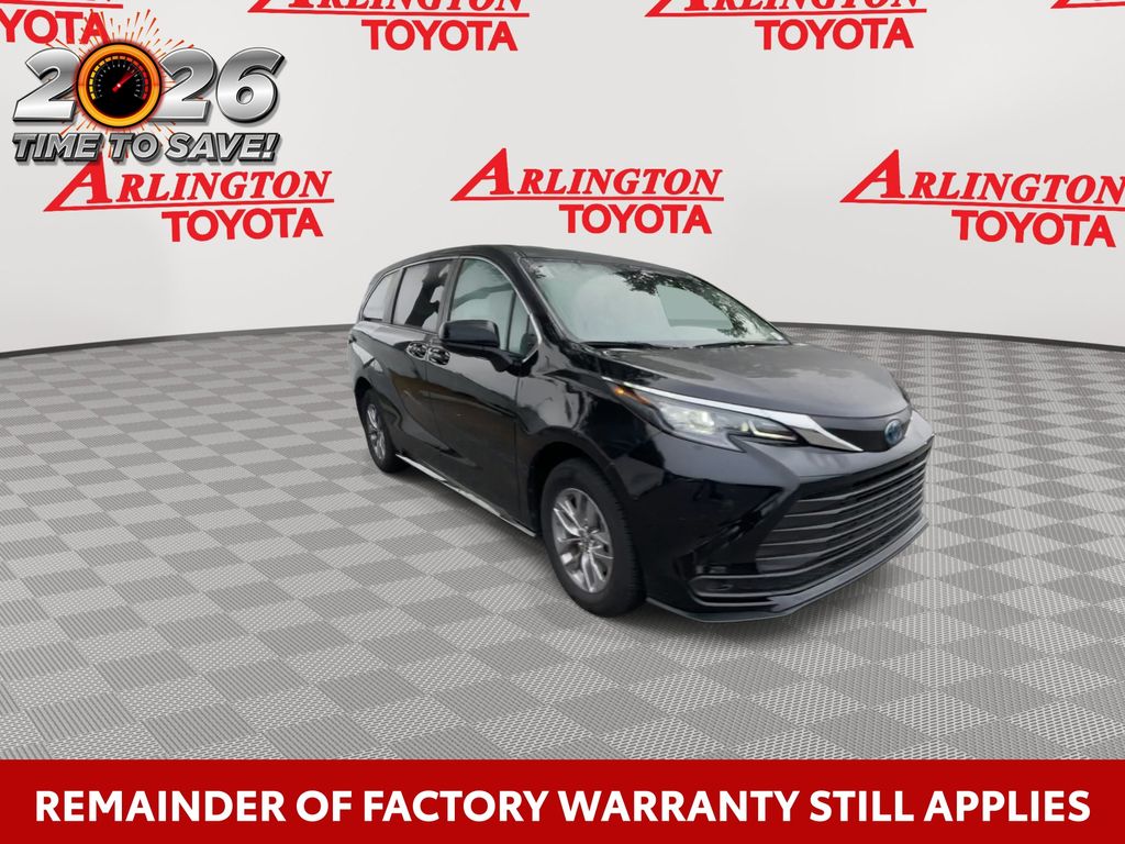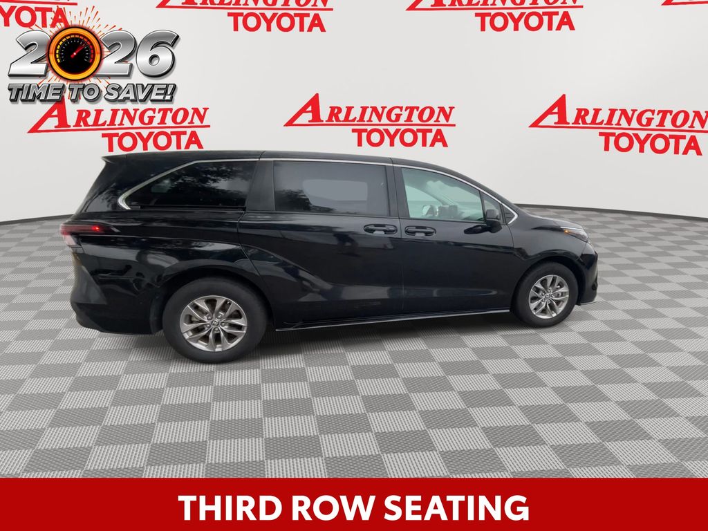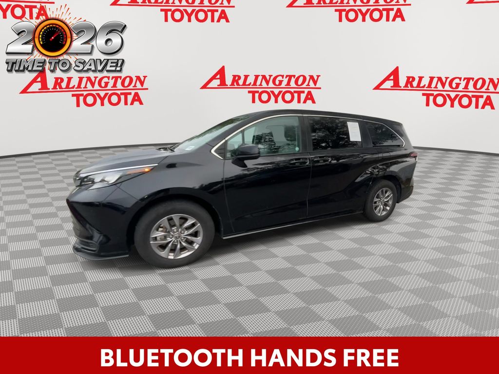 REMAINDER OF FACTORY WARRANTY STILL APPLIES, BACKUP CAMERA, BLUETOOTH HANDS FREE, ANDROID AUTO, APPLE CARPLAY, POWER SEATS, THIRD ROW SEATING, PUSH BUTTON START, LANE DEPARTURE, ADAPTIVE CRUISE CONTROL, NON SMOKER, Sienna LE 8 Passenger, 4D Passenger Van, 2.5L I4, CVT, FWD, Midnight Black Metallic, Graphite Cloth, ABS brakes, Four wheel independent suspension, Front dual zone A/C, Low tire pressure warning, Remote keyless entry, Steering wheel mounted audio controls, Turn signal indicator mirrors, 17" Alloy Wheels, 3rd row seats: split-bench, 4-Wheel Disc Brakes, 6 Speakers, Air Conditioning, Alloy wheels, AM/FM radio: SiriusXM, Apple CarPlay/Android Auto, Auto High-beam Headlights, Auto-dimming door mirrors, Automatic temperature control, Axle Ratio: TBA, Brake assist, Bumpers: body-color, Compass, Delay-off headlights, Door auto-latch, Driver door bin, Driver vanity mirror, Driver's Seat Mounted Armrest, Dual front impact airbags, Dual front side impact airbags, Electronic Stability Control, Exterior Parking Camera Rear, Fabric Seat Material, Front anti-roll bar, Front Bucket Seats, Front reading lights, Fully automatic headlights, Heated door mirrors, Illuminated entry, Knee airbag, Lane Departure Warning System, Occupant sensing airbag, Outside temperature display, Overhead airbag, Overhead console, Panic alarm, Passenger door bin, Passenger seat mounted armrest, Passenger vanity mirror, Power door mirrors, Power driver seat, Power steering, Power windows, Radio data system, Radio: Audio System, Rear air conditioning, Rear anti-roll bar, Rear reading lights, Rear seat center armrest, Rear side impact airbag, Rear window defroster, Rear window wiper, Reclining 3rd row seat, Speed control, Speed-sensing steering, Split folding rear seat, Spoiler, Tachometer, Telescoping steering wheel, Tilt steering wheel, Traction control, Trip computer, Variably intermittent wipers, Sienna LE 8 Passenger, 4D Passenger Van, 2.5L I4, CVT, FWD, Midnight Black Metallic, Graphite Cloth, ABS brakes, Four wheel independent suspension, Front dual zone A/C, Low tire pressure warning, Remote keyless entry, Steering wheel mounted audio controls, Turn signal indicator mirrors.