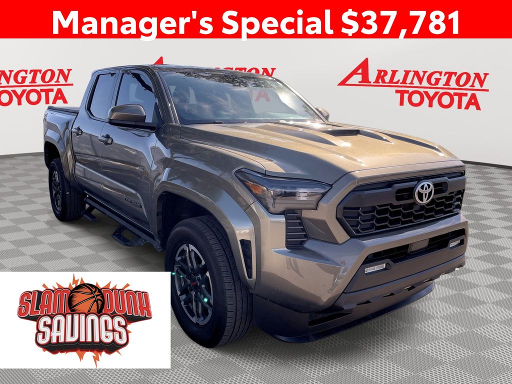 REMAINDER OF FACTORY WARRANTY STILL APPLIES, BACKUP CAMERA, BLUETOOTH HANDS FREE, ANDROID AUTO, APPLE CARPLAY, BED LINER, TOW PACKAGE, PUSH BUTTON START, LANE DEPARTURE, ADAPTIVE CRUISE CONTROL, NON SMOKER, Tacoma TRD Sport, 4D Double Cab, 2.4L 4-Cylinder, 8-Speed Automatic, RWD, Bronze Oxide, Boulder/Black Cloth, ABS brakes, Four wheel independent suspension, Fully automatic headlights, Low tire pressure warning, 3.583 Axle Ratio, 4-Wheel Disc Brakes, 6 Speakers, Air Conditioning, Alloy wheels, AM/FM radio: SiriusXM, Anti-whiplash front head restraints, Apple CarPlay/Android Auto, Auto High-beam Headlights, Auto-dimming Rear-View mirror, Automatic temperature control, Brake assist, Bumpers: body-color, Driver door bin, Driver vanity mirror, Dual front impact airbags, Dual front side impact airbags, Electronic Stability Control, Exterior Parking Camera Rear, Fabric Seat Trim (FE), Front anti-roll bar, Front Bucket Seats, Front Center Armrest, Front fog lights, Front reading lights, Heated door mirrors, Illuminated entry, Knee airbag, Leather Shift Knob, Leather steering wheel, Occupant sensing airbag, Outside temperature display, Overhead airbag, Overhead console, Panic alarm, Passenger door bin, Passenger vanity mirror, Power door mirrors, Power steering, Power windows, Radio: 14" Toyota Audio Multimedia (EE), Radio: 8" Toyota Audio Multimedia, Rear step bumper, Rear window defroster, Remote keyless entry, Security system, Speed control, Speed-sensing steering, Split folding rear seat, Spray-On Bed Liner (TMS), Steering wheel mounted audio controls, Tachometer, Telescoping steering wheel, Tilt steering wheel, Traction control, Trip computer, Turn signal indicator mirrors, Variably intermittent wipers, Wheels: 18" TRD Sport Alloy, Tacoma TRD Sport, 4D Double Cab, 2.4L 4-Cylinder, 8-Speed Automatic, RWD, Bronze Oxide, Boulder/Black Cloth, ABS brakes, Four wheel independent suspension, Fully automatic headlights, Low tire pressure warning.