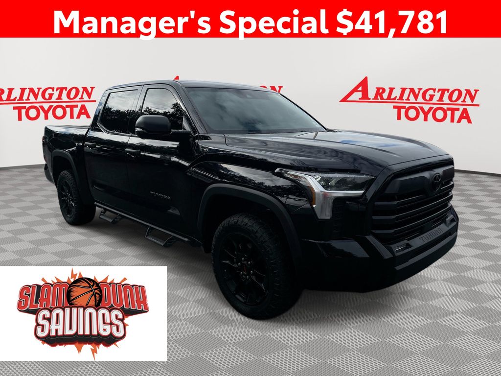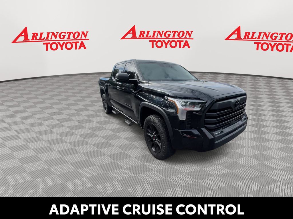 REMAINDER OF FACTORY WARRANTY STILL APPLIES, BACKUP CAMERA, BLUETOOTH HANDS FREE, ANDROID AUTO, APPLE CARPLAY, 4X4/FOUR WHEEL DRIVE, LANE DEPARTURE, ADAPTIVE CRUISE CONTROL, NON SMOKER, Tundra SR5 XP PACKAGE 4X4, 4D CrewMax, 3.4L V6, 10-Speed Automatic, 4WD, Midnight Black, Black Cloth, ABS brakes, Electronic Stability Control, Fully automatic headlights, Low tire pressure warning, Steering wheel mounted audio controls, 18" Alloy Wheels, 3.31 Axle Ratio, 32 Gallon Fuel Tank, 4-Way Adjustable Front Bucket Seats, 4-Wheel Disc Brakes, 9 Speakers, Air Conditioning, Alloy wheels, AM/FM radio: SiriusXM, Apple CarPlay/Android Auto, Auto High-beam Headlights, Automatic temperature control, Blind Spot Monitor, Blind Spot Monitor w/Lane Change Assist, Brake assist, Bumpers: body-color, Delay-off headlights, Driver door bin, Driver vanity mirror, Dual front impact airbags, Dual front side impact airbags, Exterior Parking Camera Rear, Fabric Seat Trim (FB), Front anti-roll bar, Front Bucket Seats, Front Center Armrest, Front fog lights, Front reading lights, Front wheel independent suspension, Heated door mirrors, Heated Power Black Outside Mirrors, Illuminated entry, Knee airbag, Occupant sensing airbag, Outside temperature display, Overhead airbag, Overhead console, Panic alarm, Parking Support Alert/Brake, Passenger door bin, Passenger vanity mirror, Power door mirrors, Power steering, Power windows, Radio data system, Radio: Audio Multimedia System, Rear reading lights, Rear step bumper, Rear window defroster, Remote keyless entry, Safety Connect, Security system, Speed control, Speed-sensing steering, Split folding rear seat, SR5 Convenience Package, Tachometer, Telescoping steering wheel, Tilt steering wheel, Traction control, Trip computer, Variably intermittent wipers, Voltmeter, Tundra SR5 XP PACKAGE 4X4, 4D CrewMax, 3.4L V6, 10-Speed Automatic, 4WD, Midnight Black, Black Cloth, ABS brakes, Electronic Stability Control, Fully automatic headlights, Low tire pressure warning, Steering wheel mounted audio controls.