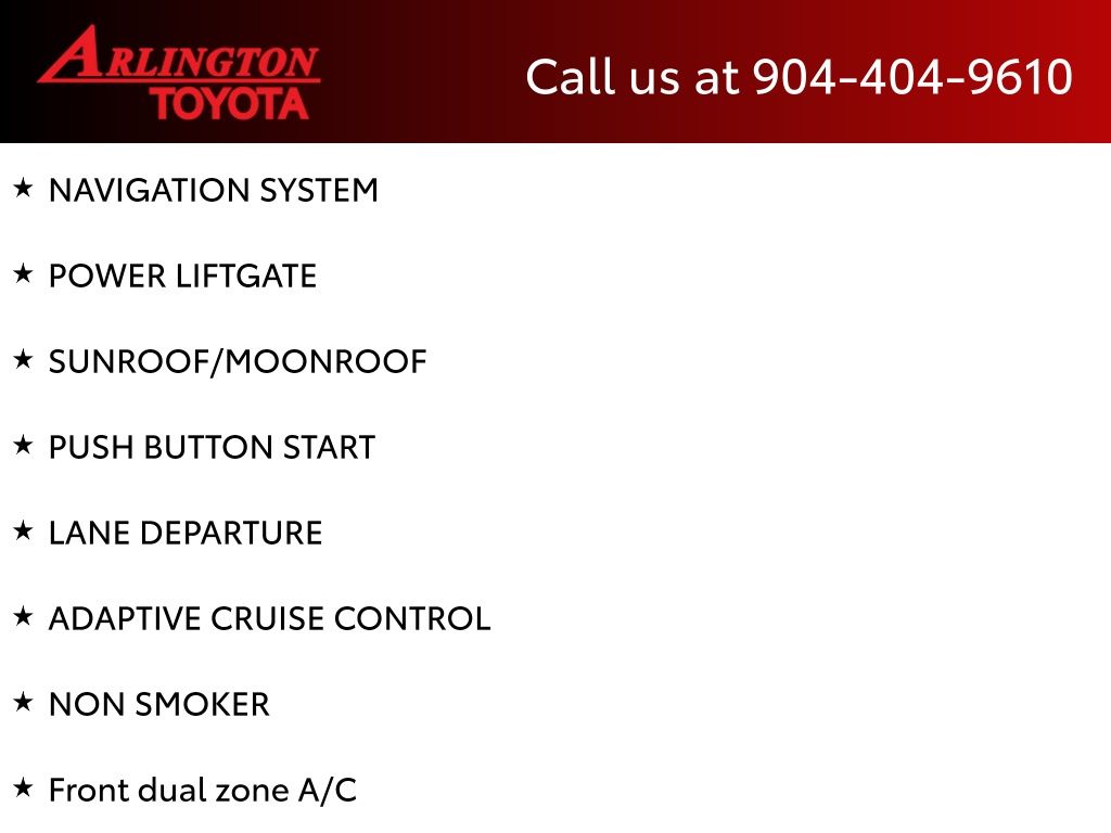 CALL FOR AVAILABILITY AND EXTRA OPTIONS ARLINGTON TOYOTA 904-721-3000.