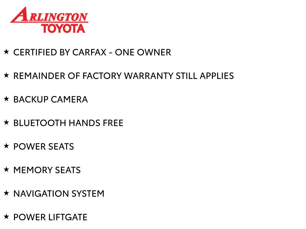 Prices do not include tax, tag, title, a pre-delivery service fee* of $894.00, an electronic registration filing fee* of $199.00 (*these charges represent costs and profits to the dealer for items such as inspecting, cleaning, and preparing documents related to the sale), and an Arlington Toyota Total Value Package of $1,889.00 (*these charges represent costs and profits to the dealer for items such as inspecting, cleaning, and preparing documents related to the sale). The final price is also subject to repair order reconditioning costs. Any price does not include dealer-installed accessories. All offers are mutually exclusive. All vehicles are subject to prior sale. See dealer for complete details.