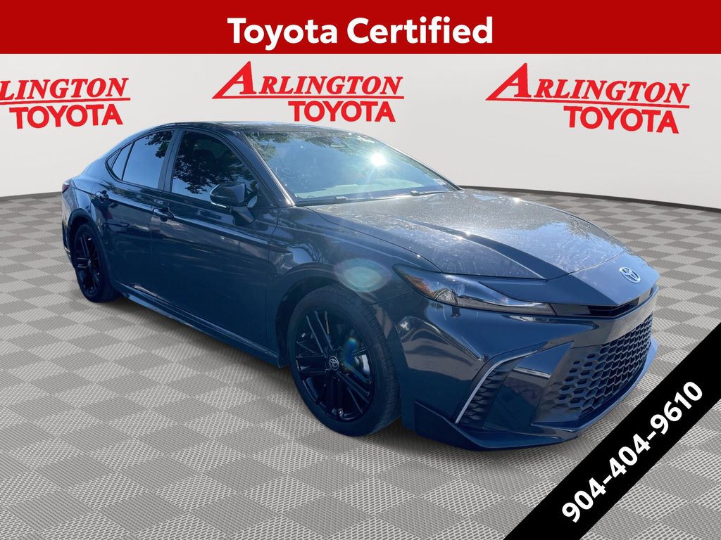 CERTIFIED BY CARFAX - ONE OWNER, REMAINDER OF FACTORY WARRANTY STILL APPLIES, BACKUP CAMERA, BLUETOOTH HANDS FREE, ANDROID AUTO, APPLE CARPLAY, POWER SEATS, PUSH BUTTON START, LANE DEPARTURE, ADAPTIVE CRUISE CONTROL, NON SMOKER, Camry SE, 4D Sedan, 2.5L 4-Cylinder 16V DOHC, eCVT, FWD, Underground, Boulder Cloth, 4-Wheel Disc Brakes, 6 Speakers, ABS brakes, Air Conditioning, Alloy wheels, AM/FM radio: SiriusXM, Apple CarPlay/Android Auto, Auto High-beam Headlights, Automatic temperature control, Brake assist, Bumpers: body-color, Delay-off headlights, Driver door bin, Driver vanity mirror, Dual front impact airbags, Dual front side impact airbags, Electronic Stability Control, Emergency communication system: Safety Connect (up to 10-year trial subscription), Exterior Parking Camera Rear, Four wheel independent suspension, Front Accent Lighting (TMS), Front anti-roll bar, Front Bucket Seats, Front Center Armrest, Front dual zone A/C, Front reading lights, Fully automatic headlights, Heated door mirrors, Illuminated entry, Knee airbag, Leather Shift Knob, Leather steering wheel, Low tire pressure warning, Occupant sensing airbag, Outside temperature display, Overhead airbag, Overhead console, Panic alarm, Passenger door bin, Passenger vanity mirror, Power door mirrors, Power driver seat, Power steering, Power windows, Radio data system, Radio: Toyota Audio Multimedia w/12.3" Touchscreen, Radio: Toyota Audio Multimedia w/8" Touchscreen, Rear anti-roll bar, Rear reading lights, Rear seat center armrest, Rear side impact airbag, Rear window defroster, Remote keyless entry, Security system, SofTex & Fabric Seat Trim, Speed control, Speed-sensing steering, Split folding rear seat, Spoiler, Steering wheel mounted audio controls, Telescoping steering wheel, Tilt steering wheel, Traction control, Trip computer, Turn signal indicator mirrors, Variably intermittent wipers, Wheels: 18" Black-Finished Alloy, Camry SE, 4D Sedan, 2.5L 4-Cylinder 16V DOHC, eCVT, FWD, Underground, Boulder Cloth.