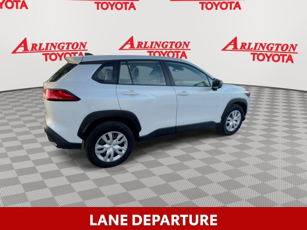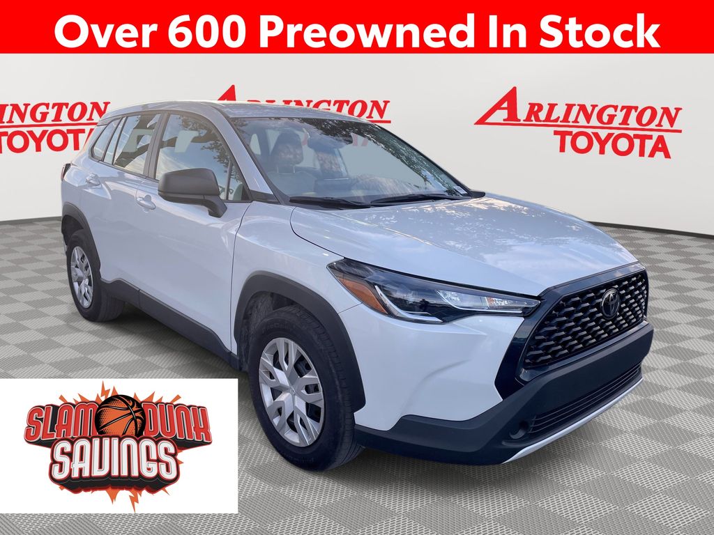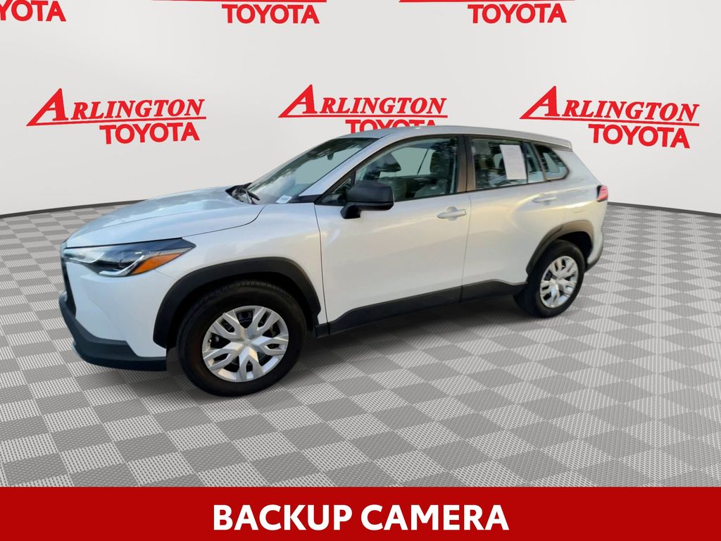 CERTIFIED BY CARFAX - ONE OWNER, REMAINDER OF FACTORY WARRANTY STILL APPLIES, BACKUP CAMERA, BLUETOOTH HANDS FREE, ANDROID AUTO, APPLE CARPLAY, LANE DEPARTURE, ADAPTIVE CRUISE CONTROL, NON SMOKER, Corolla Cross L, 4D Sport Utility, 2.0L I4 PDI DOHC 16V LEV3-SULEV30 169hp, CVT, FWD, Wind Chill Pearl, Light Gray Cloth, ABS brakes, Electronic Stability Control, Low tire pressure warning, Steering wheel mounted audio controls, 4-Wheel Disc Brakes, 6 Speakers, Air Conditioning, AM/FM radio: SiriusXM, Auto High-beam Headlights, Brake assist, Bumpers: body-color, Delay-off headlights, Driver door bin, Driver vanity mirror, Dual front impact airbags, Dual front side impact airbags, Exterior Parking Camera Rear, Fabric Seat Trim, Front anti-roll bar, Front Bucket Seats, Front Center Armrest, Front reading lights, Front wheel independent suspension, Heated door mirrors, Illuminated entry, Knee airbag, Occupant sensing airbag, Outside temperature display, Overhead airbag, Panic alarm, Passenger door bin, Passenger vanity mirror, Power door mirrors, Power steering, Power windows, Radio data system, Radio: 8" Toyota Audio Multimedia with 6 Speakers, Rear anti-roll bar, Rear side impact airbag, Rear window defroster, Remote keyless entry, Speed control, Split folding rear seat, Spoiler, Tachometer, Telescoping steering wheel, Tilt steering wheel, Traction control, Trip computer, Wheels: 17" Steel with Silver Covers, Corolla Cross L, 4D Sport Utility, 2.0L I4 PDI DOHC 16V LEV3-SULEV30 169hp, CVT, FWD, Wind Chill Pearl, Light Gray Cloth, ABS brakes, Electronic Stability Control, Low tire pressure warning, Steering wheel mounted audio controls.